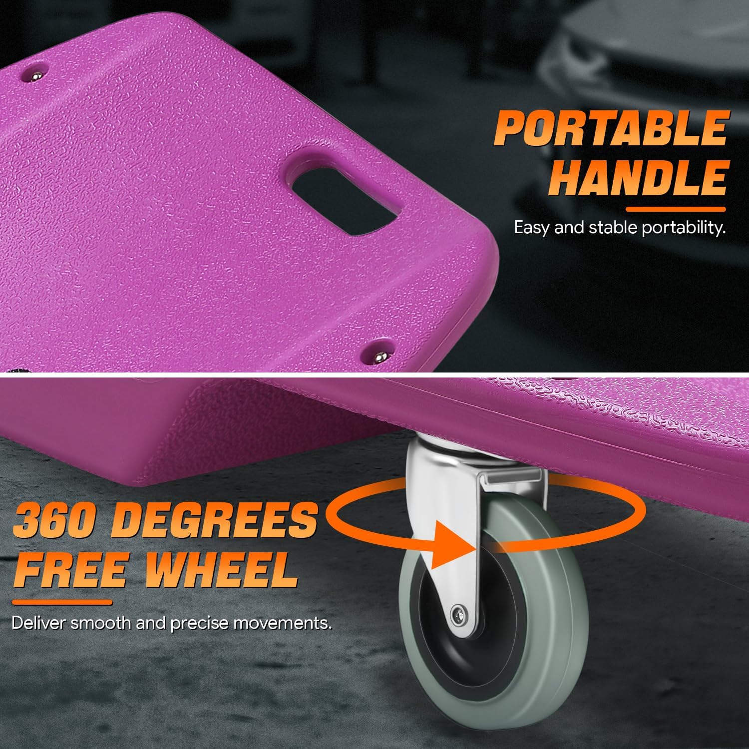 DNA MOTORING 48 Inches Heavy-Duty Low-Profile Roller Automotive Creeper with Padded Headrest, Purple, TOOLS-00239-PR