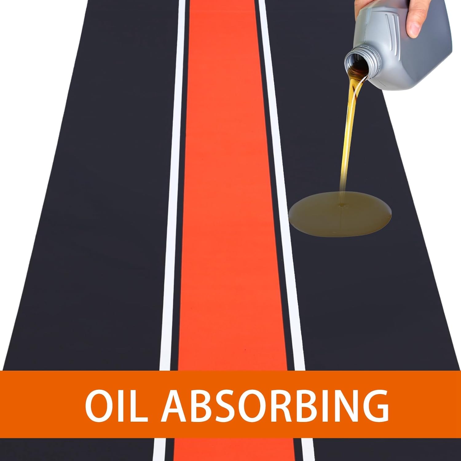 Motorcycle Mat 98 x 31 Inch Garage Floor Rug Washable Parking Mats for Garage Floors Non Slip Oil Absorbent Pad Rubber Backing Layer Protects Floor from Spills Drips Stains(Stripe Style)