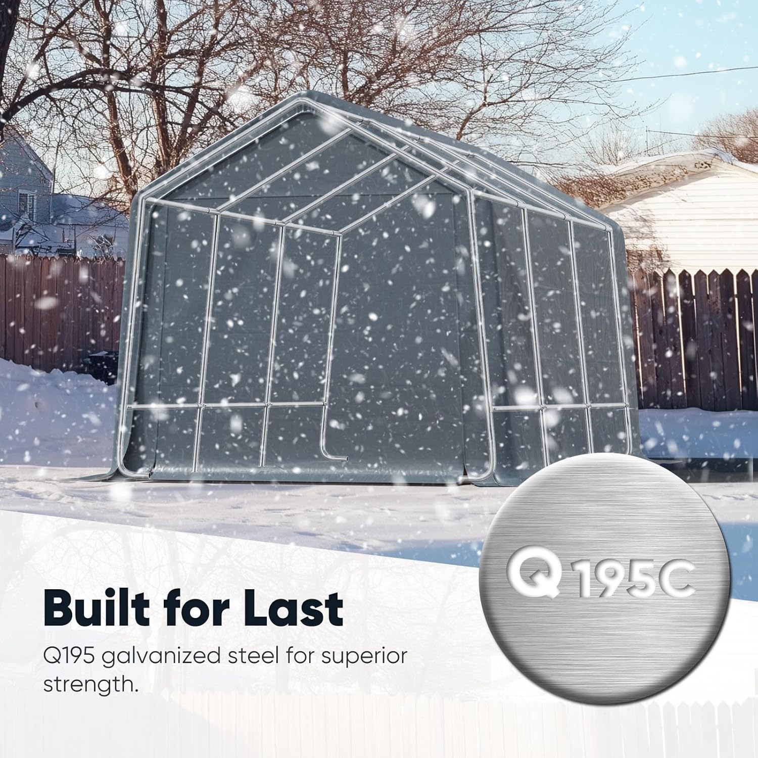 Quictent Heavy Duty 8x14FT Carport Shelter with Roll-Up Mesh Windows & Reinforced Frame, Portable Garage Canopy for Motorcycle Storage, Outdoor Equipment, Patio Furniture Cover - Dark Gray