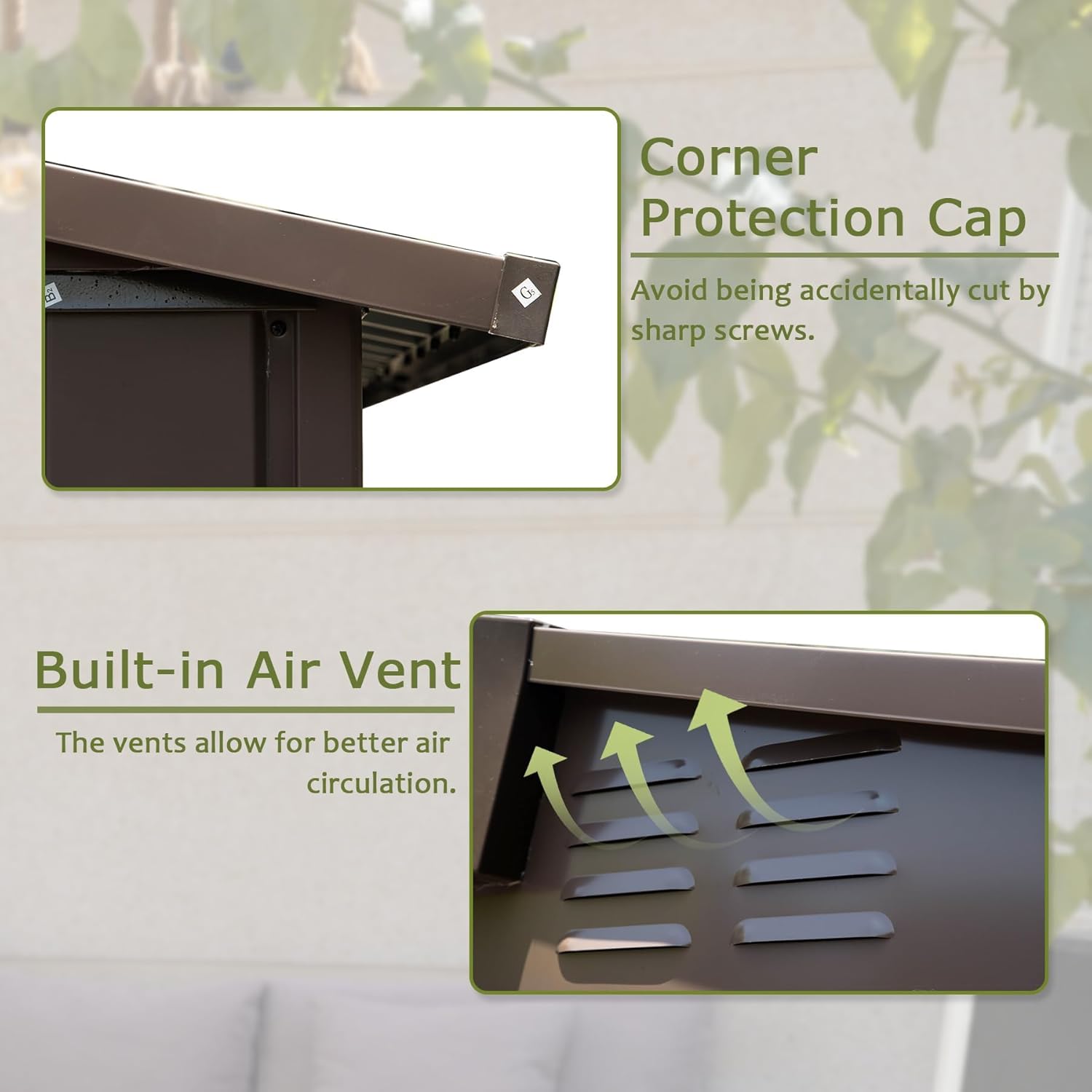 - Durable Galvanized Steel Frame for Long-Lasting Use Constructed with premium galvanized steel. The powder-coated surface enhances durability while maintaining a sleek aesthetic. Ideal for high-humidity or rainy regions, it withstands decade-long use without warping—perfect for storing tools, gardening equipment, or seasonal items.