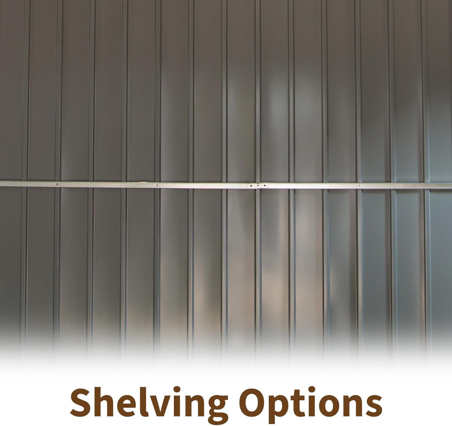 - Spacious & Organized Storage Capacity This shed provides ample space for lawnmowers, bicycles, patio furniture, and more. The intelligently designed interior accommodates shelves or hooks (not included), while wide double doors ensure easy access for bulky items. Say goodbye to cluttered garages and hello to a neatly organized backyard