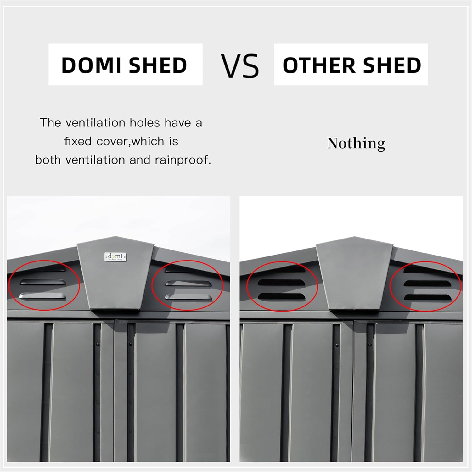 - Durable Galvanized Steel Frame for Long-Lasting Use Constructed with premium galvanized steel. The powder-coated surface enhances durability while maintaining a sleek aesthetic. Ideal for high-humidity or rainy regions, it withstands decade-long use without warping—perfect for storing tools, gardening equipment, or seasonal items.
