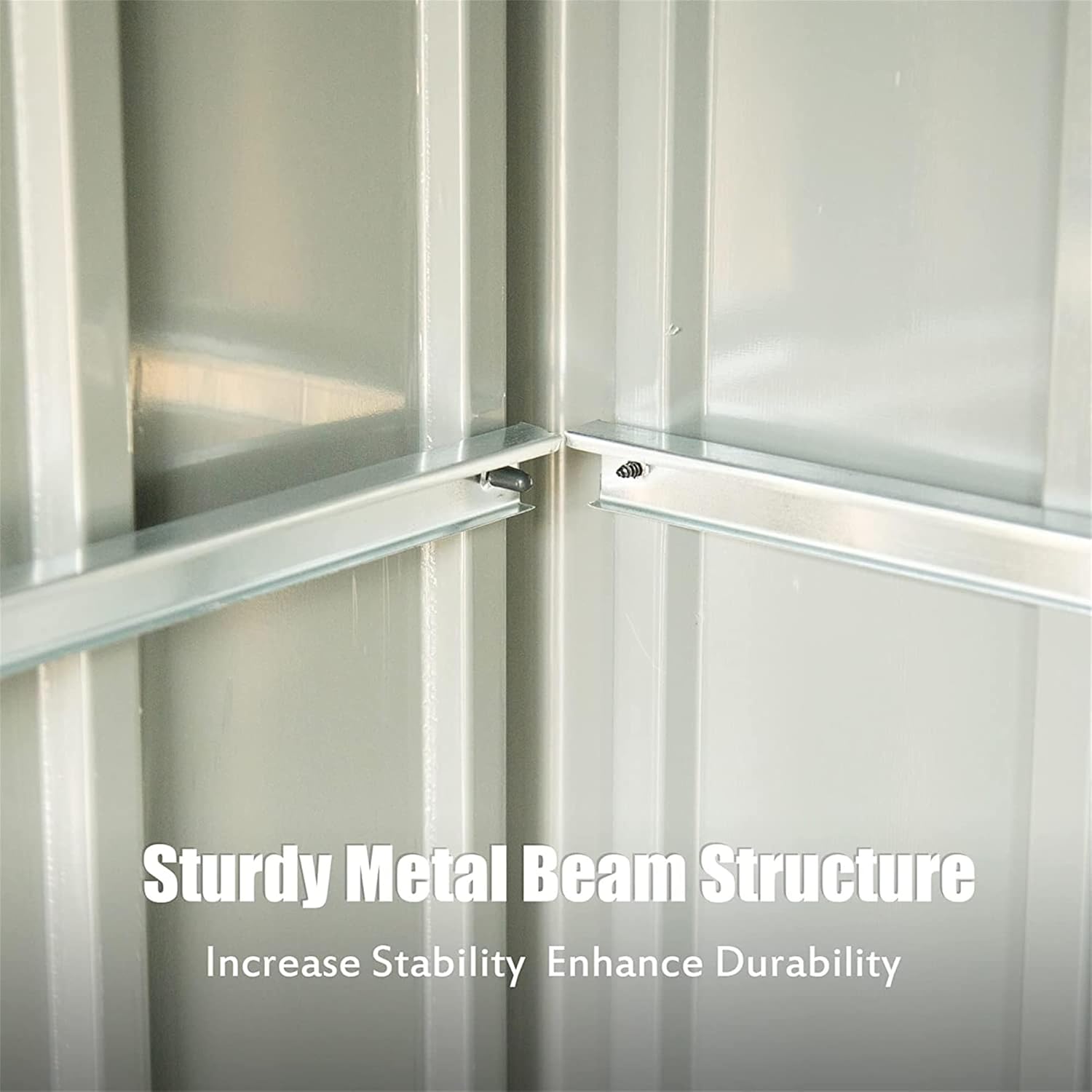 - Durable Galvanized Steel Frame for Long-Lasting Use Constructed with premium galvanized steel. The powder-coated surface enhances durability while maintaining a sleek aesthetic. Ideal for high-humidity or rainy regions, it withstands decade-long use without warping—perfect for storing tools, gardening equipment, or seasonal items.