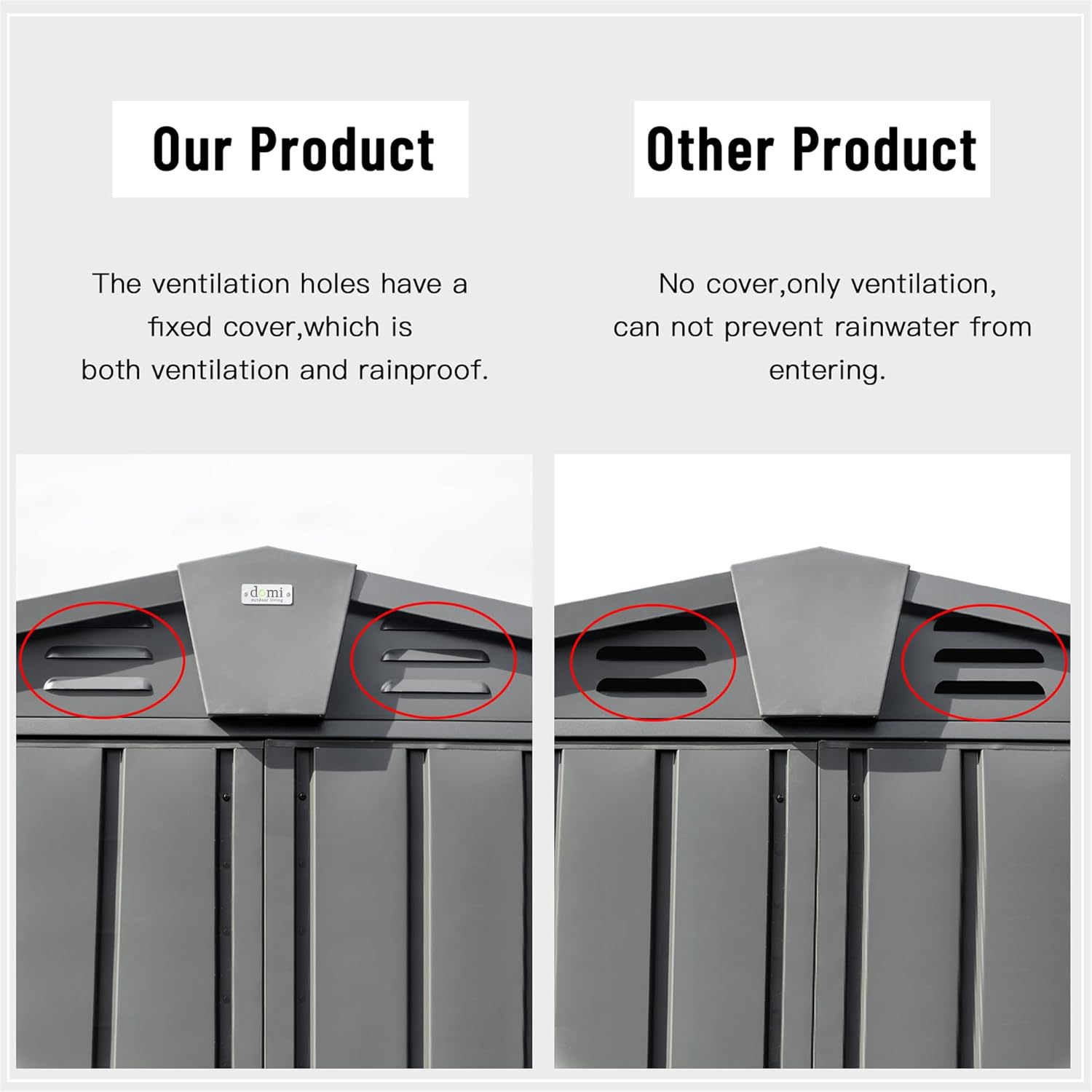- Durable Galvanized Steel Frame for Long-Lasting Use Constructed with premium galvanized steel. The powder-coated surface enhances durability while maintaining a sleek aesthetic. Ideal for high-humidity or rainy regions, it withstands decade-long use without warping—perfect for storing tools, gardening equipment, or seasonal items.