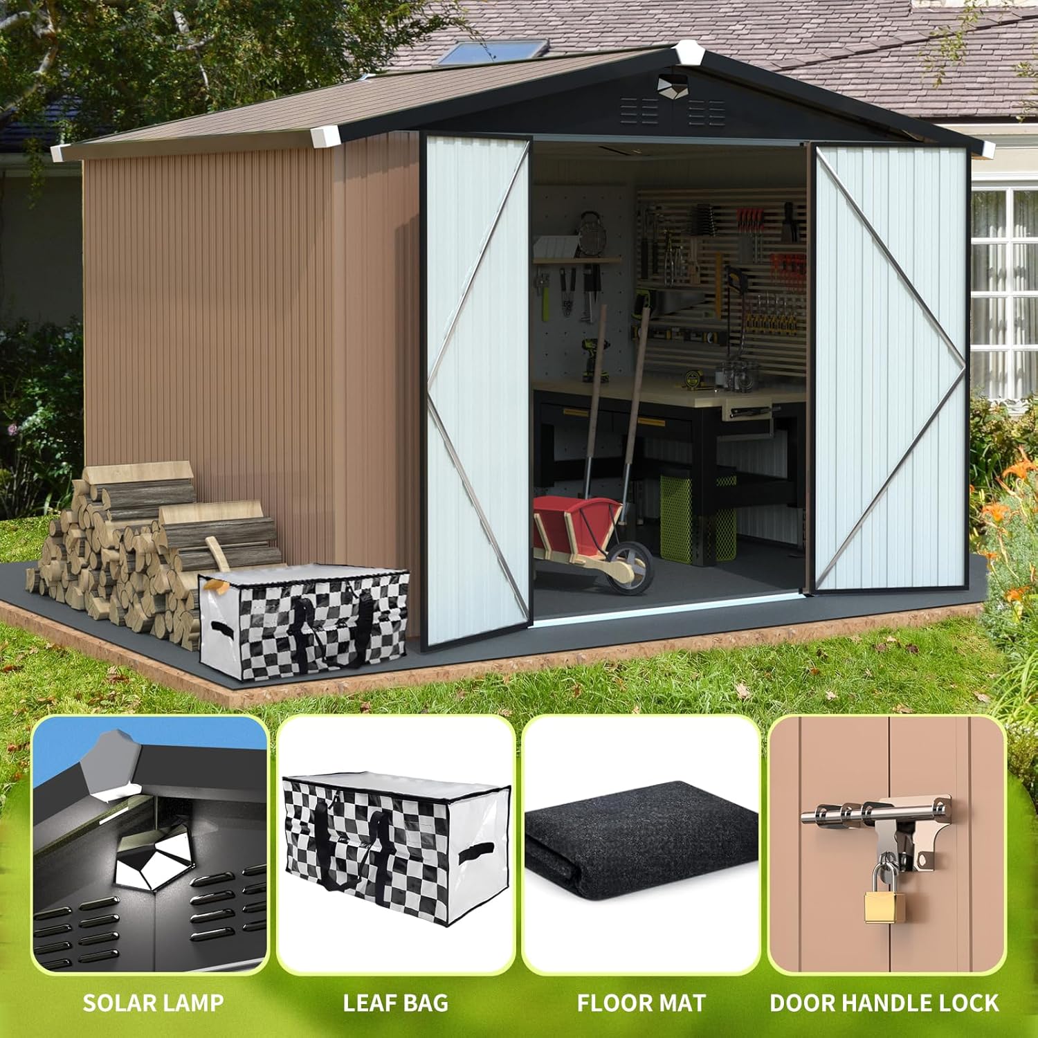 Metal Storage Shed,Outdoor Storage Building 10x8,Large Backyard Shed with Lockable Doors,Waterproof Outside Storage Shed