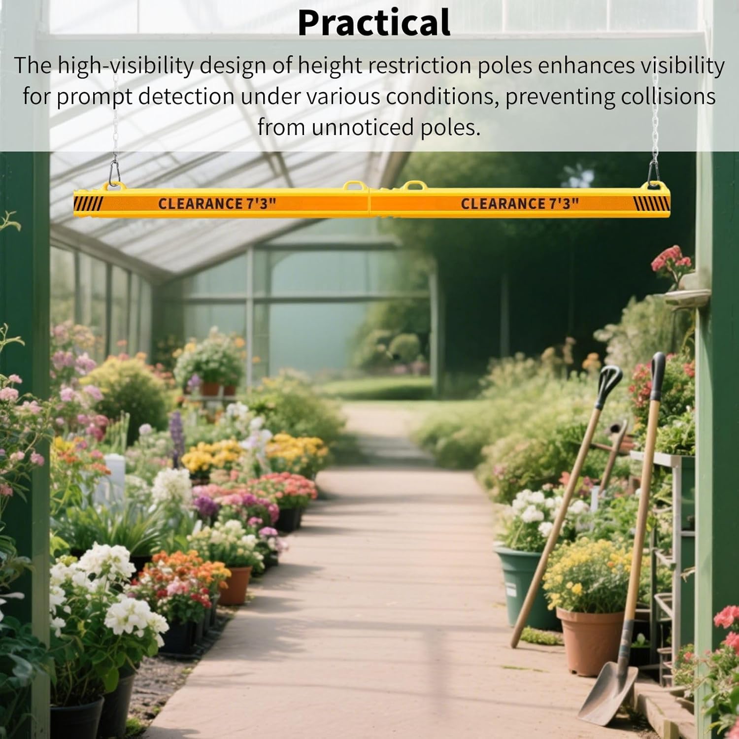 78” Height Guard Clearance Bar (Warning Sign) - MAX Clearance Adjustable to 7' 3" - Hanging Safety Bar with Reflective Yellow Stripes for Parking Lots, Warehouses, Garage Entrances