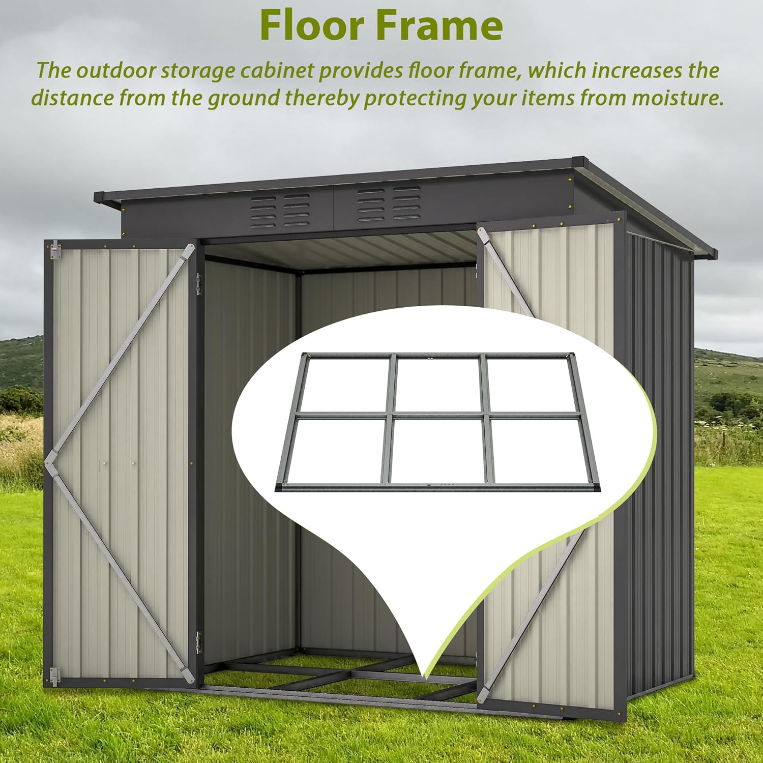 - Good Ventilation: The storage shed has vents, which can ensure good ventilation and air circulation in the shed, keeping the inside of the storage shed cool and dry, thus protecting the items stored in the storage shed.