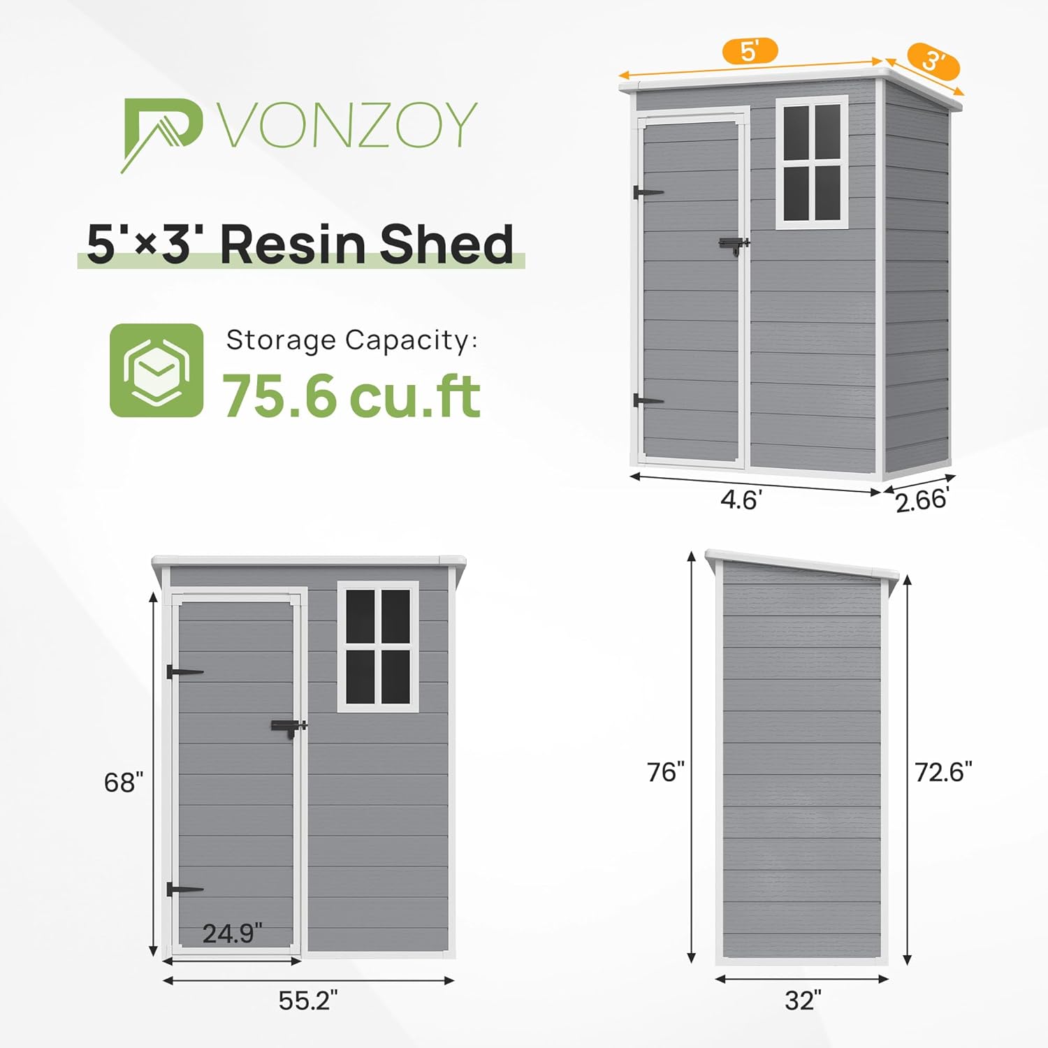 - Delivery Tip:VONZOY Resin Shed is available in many sizes for multipurpose use, perfect for outdoor backyard, garden, patio, utility room. The plastic shed can also be used as a pet house to provide a warm and safe room for your pet.Big size shed in 2 or more boxes, Please pay more attention to confirm information.