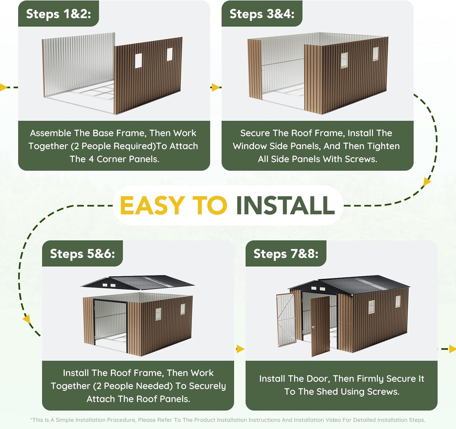 - Durable Construction: Crafted from galvanized steel, this shed is rust-resistant and weatherproof, ensuring long-lasting durability even in tough outdoor conditions.