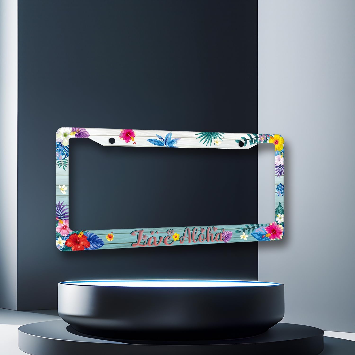 Aloha License Plate Frame Colorful Hibiscus Flowers License Plate Stainless Steel Funny Hawaii Accessories Cars Decor 12.2 X 6.2 Inch with 2 Holes and Screws Fits Standard Us Ca Vehicles