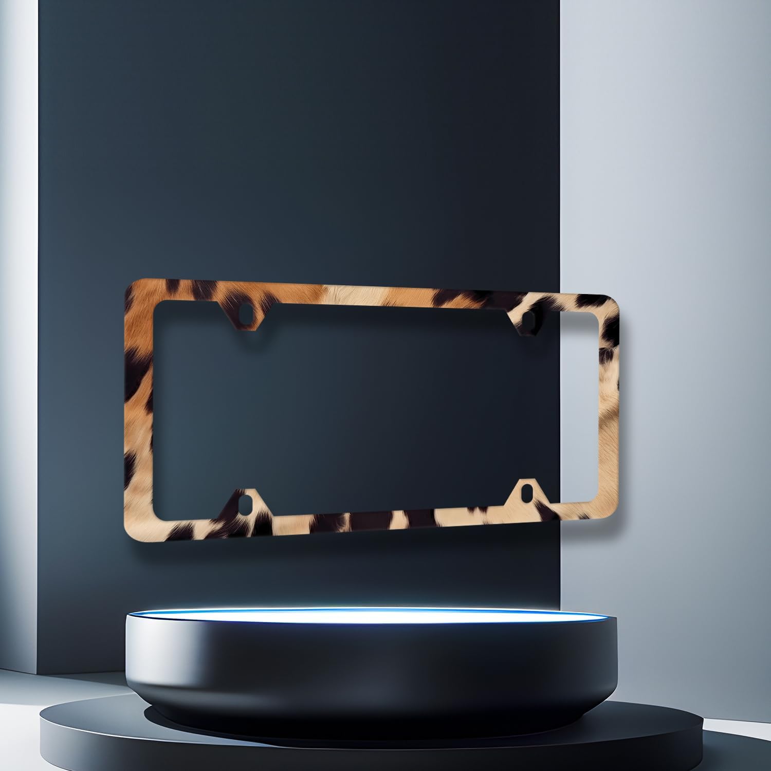 Vintage Brown White Cow Print License Plate Frame Animal Spots License Plate Stainless Steel Colorful Accessories Cars Decor 12.2 X 6.2 Inch with 4 Holes and Screws Fits Standard Us Ca Vehicles
