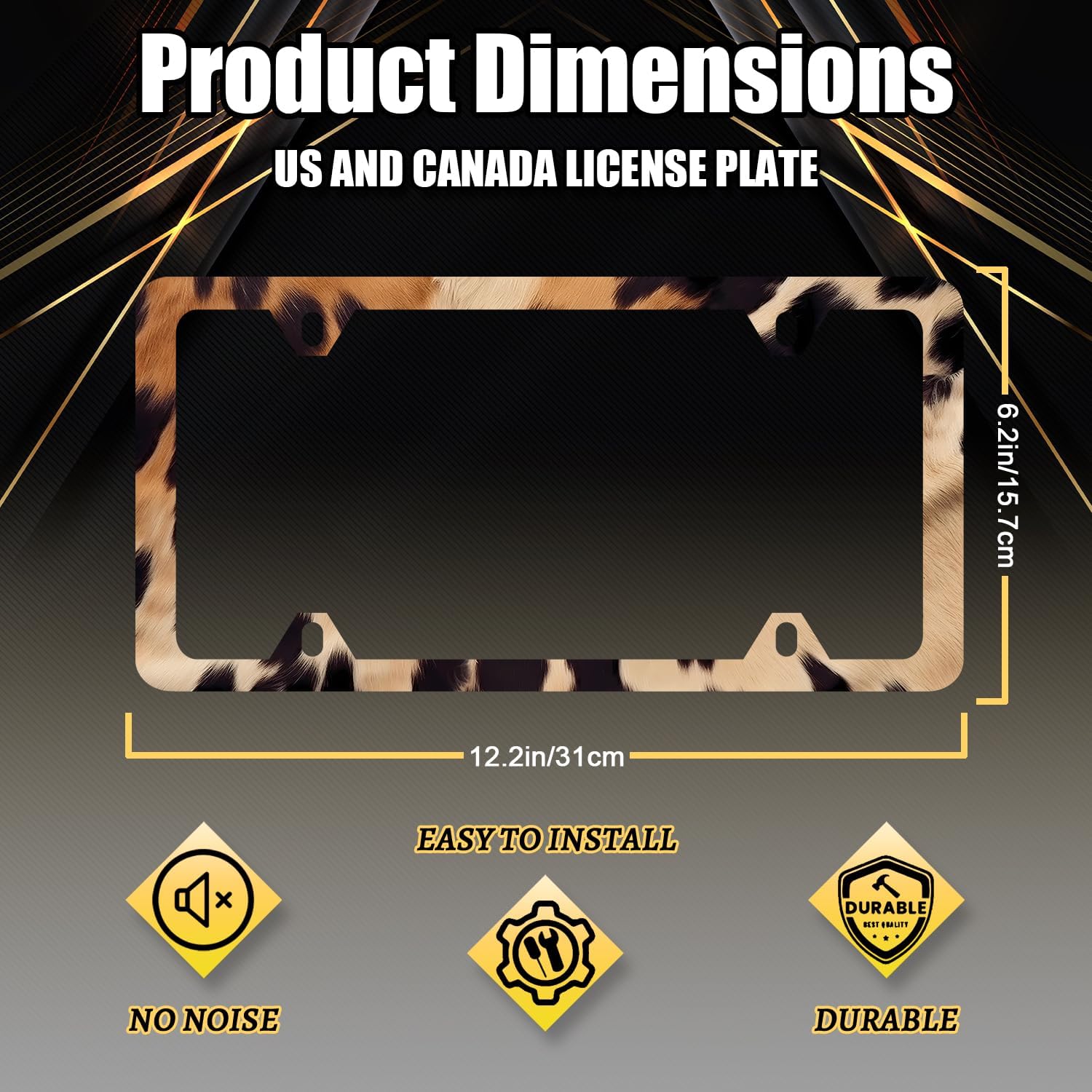 - Size: 12.2" x 6.2" , it fits all standard size US vehicle license plates.With compatibility, the stylish design frame fits on your car license plate.