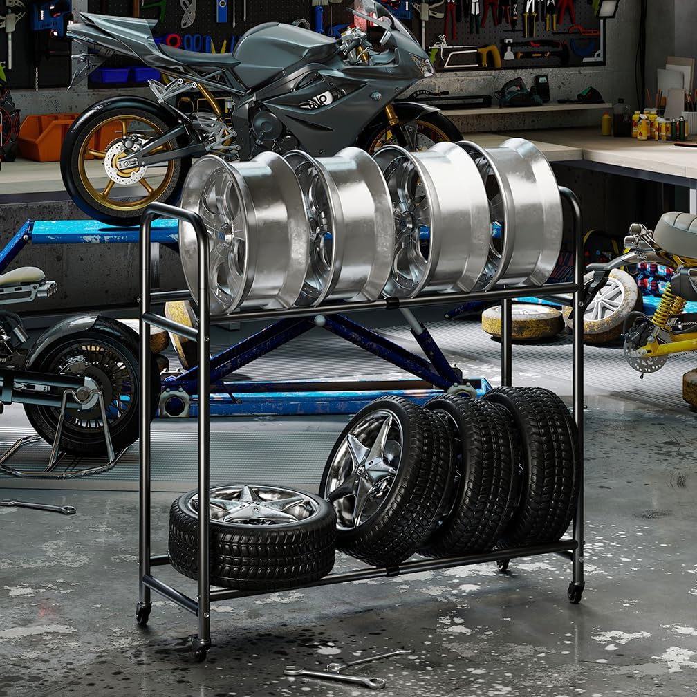 - Usage Scenarios: Used in multiple scenarios such as garages, repair shops, automotive shops or own construction sites. The tire rack is perfect for indoor and outdoor storage.