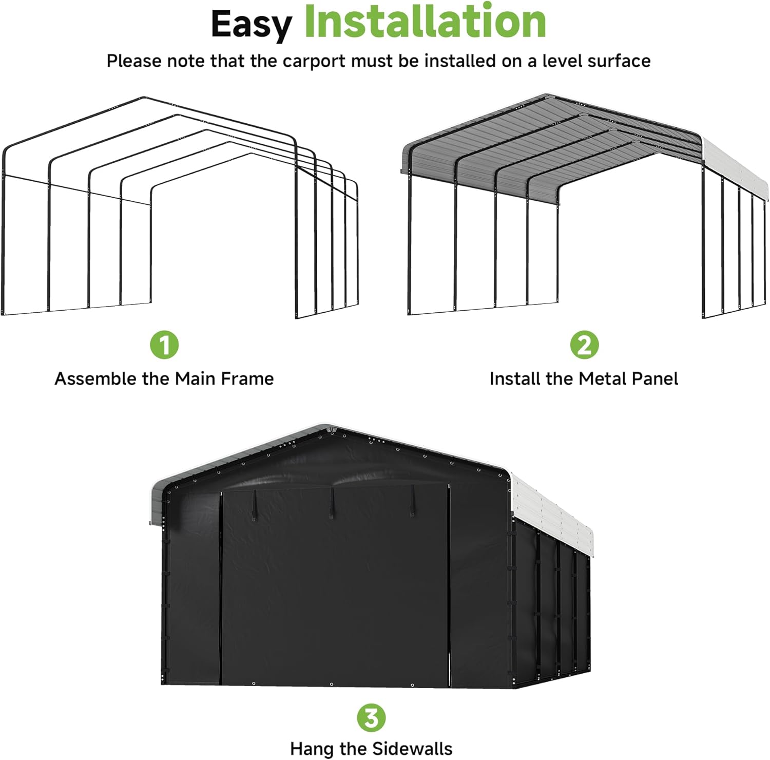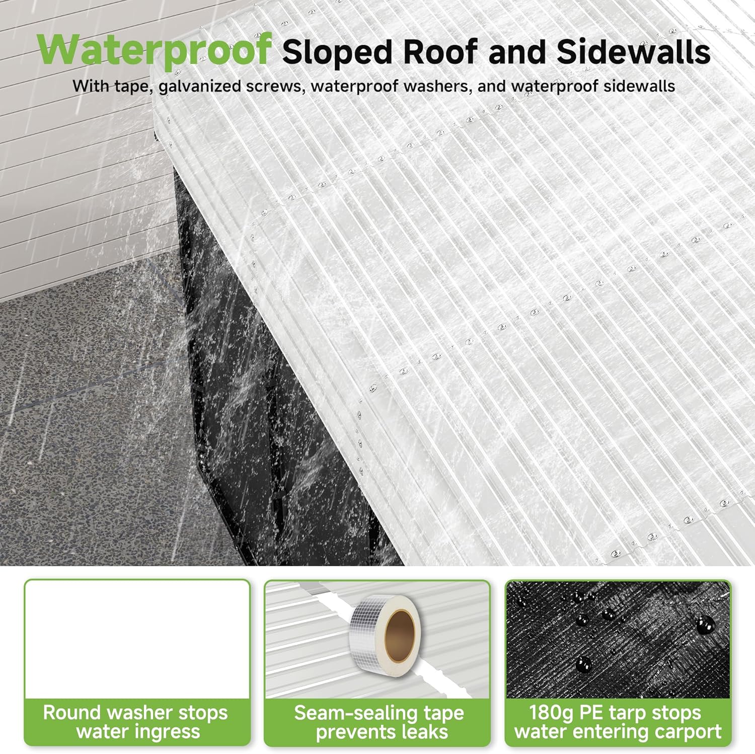 - Galvanized Steel Roof: The roof is made of galvanized steel with UV-resistant properties, helping to protect your vehicles and equipment from sun damage, while keeping the interior cooler during hot summer months.