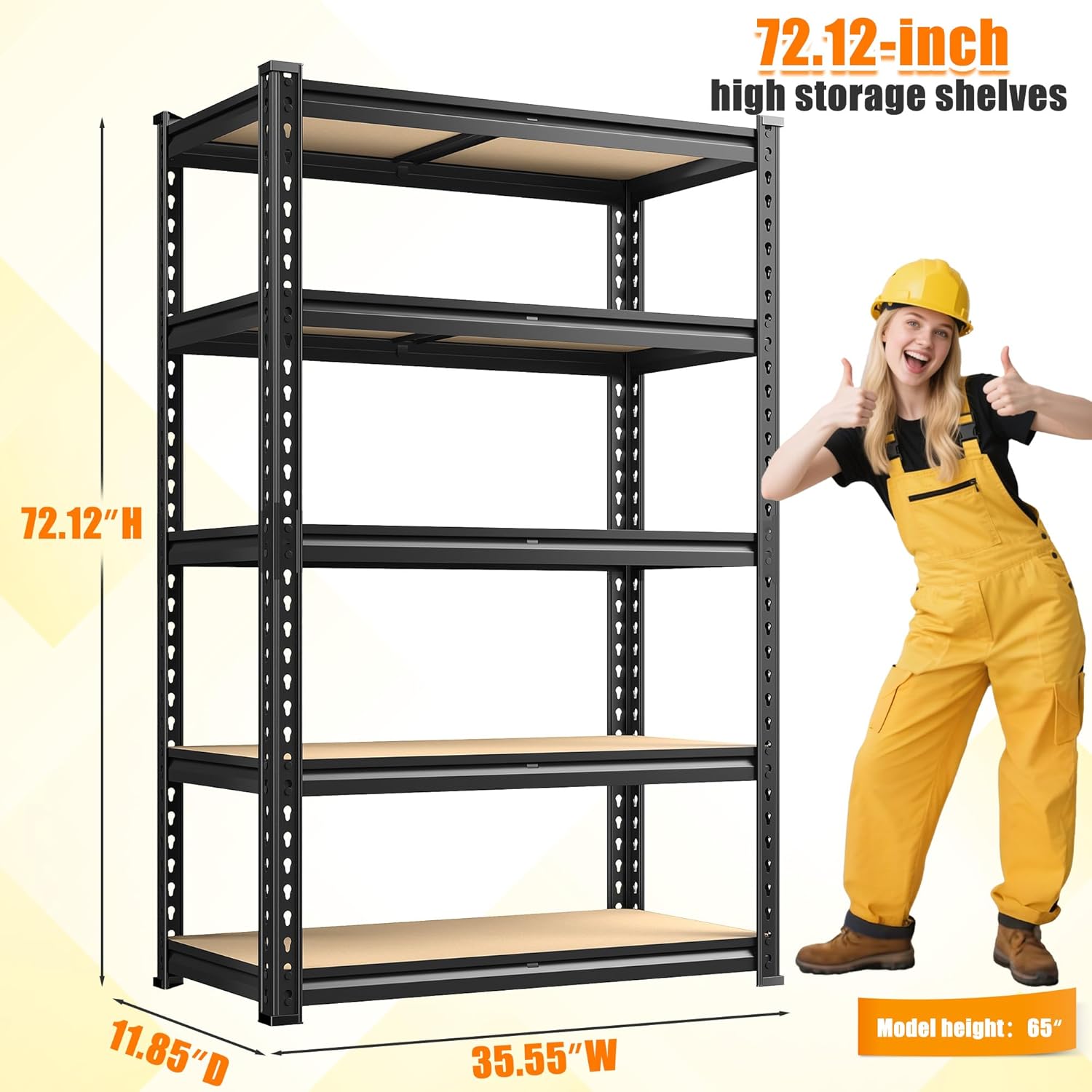 - ăSpacious 72.12" H Garage ShelvingăDurayLolyâs 35.55"W x 11.85"D x 72.12"H shelving unit fits garages, basements, or utility rooms. Organize tools, bins, and supplies efficiently in compact spaces
