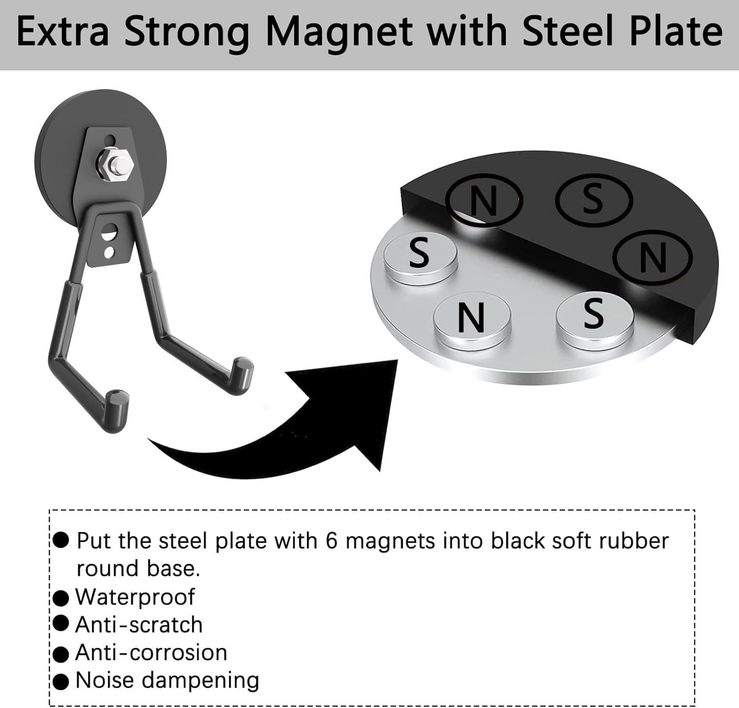 - π§²[No-Scratch Magnetic Hooks]: These hooks are tough and long-lasting. The round, black, non-slip rubber coating on the bottom keeps things in place, protects surfaces from scratches, and prevents slipping and rusting. They work great both indoors and outdoors.