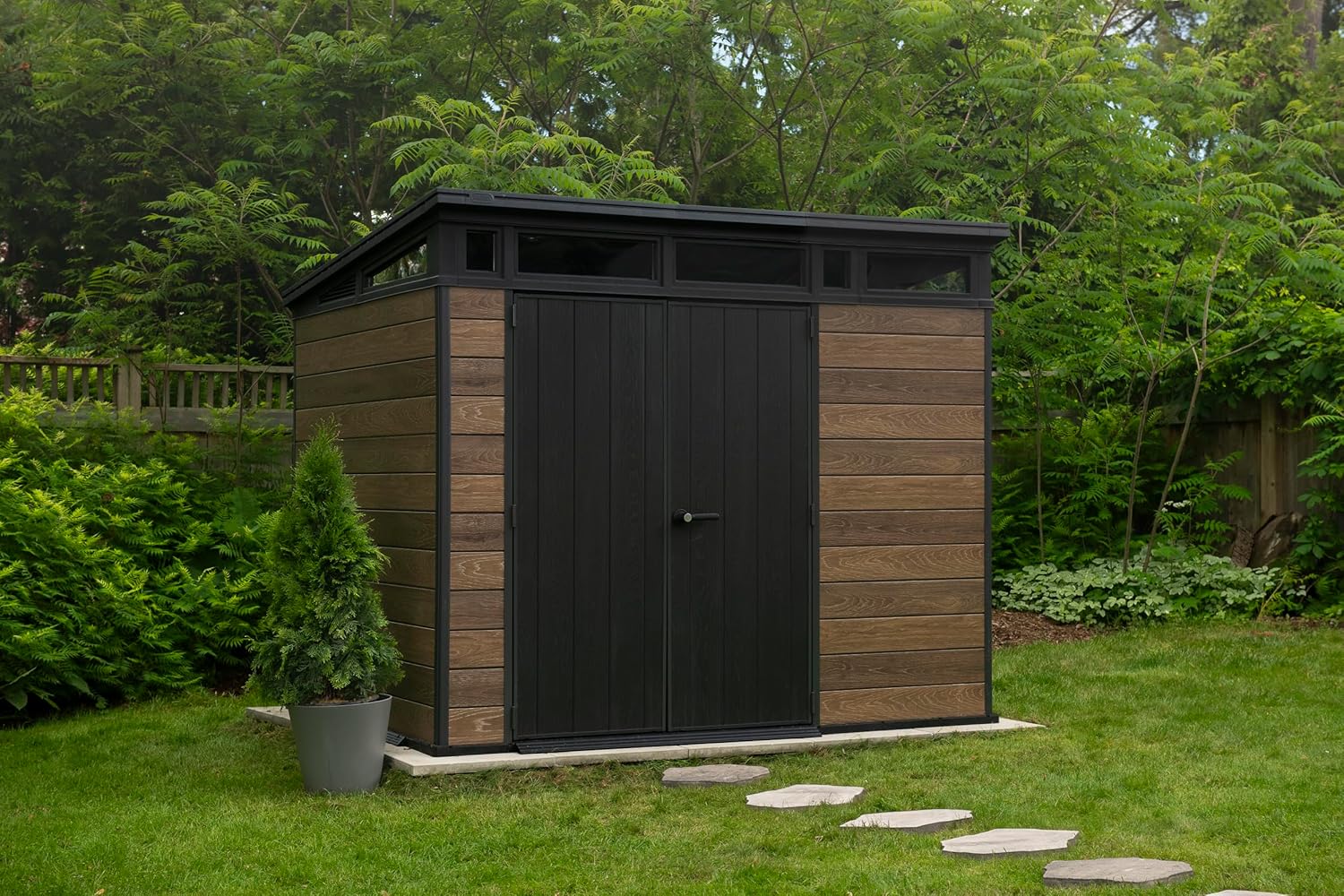 - Premium construction in stunning wood-look finishes, delivers style and beauty your outdoor storage.