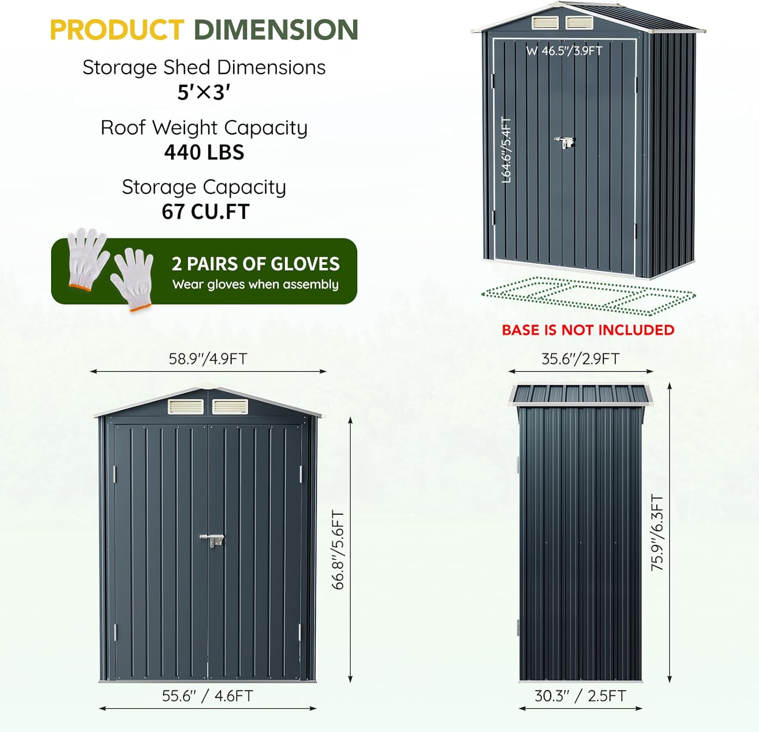 - Lockable Double Doors for Security – Features reinforced lockable doors to keep your tools, garden equipment, or cleaning supplies safe and protected from theft or animals.