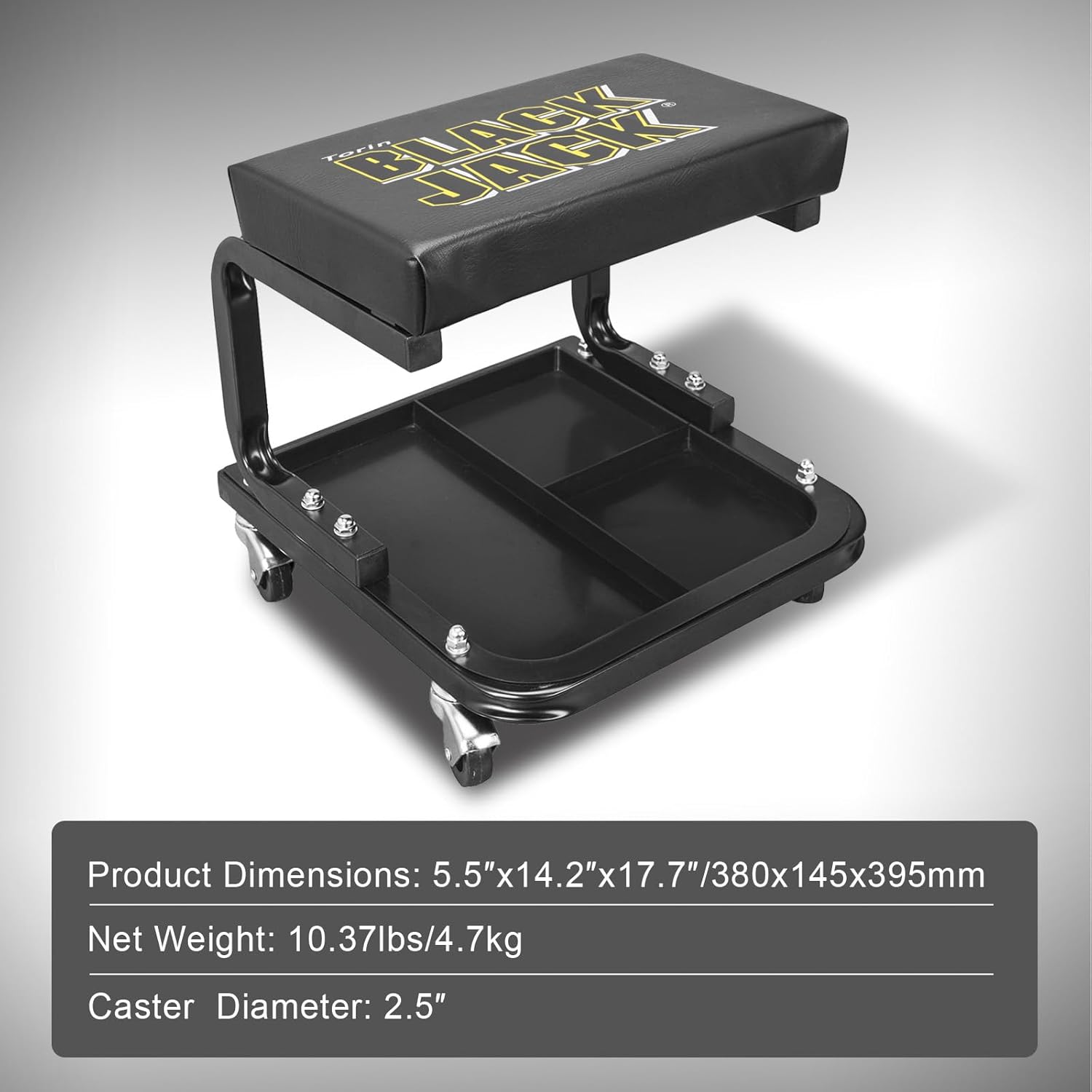 Torin Rolling Creeper Seat,Black, Large,Padded Mechanic Stool with Tool Tray Storage, Garage/Shop Seat