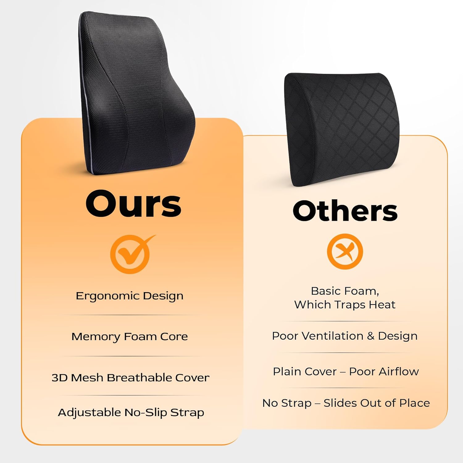 Extra Dense Lumbar Pillow with Double Adjustable Straps - Ergonomic Lumbar Support Pillow for Office Chair, Car, Couch Firm Back Support for Lower Back & Spine Pain Relief Memory Foam Cushion