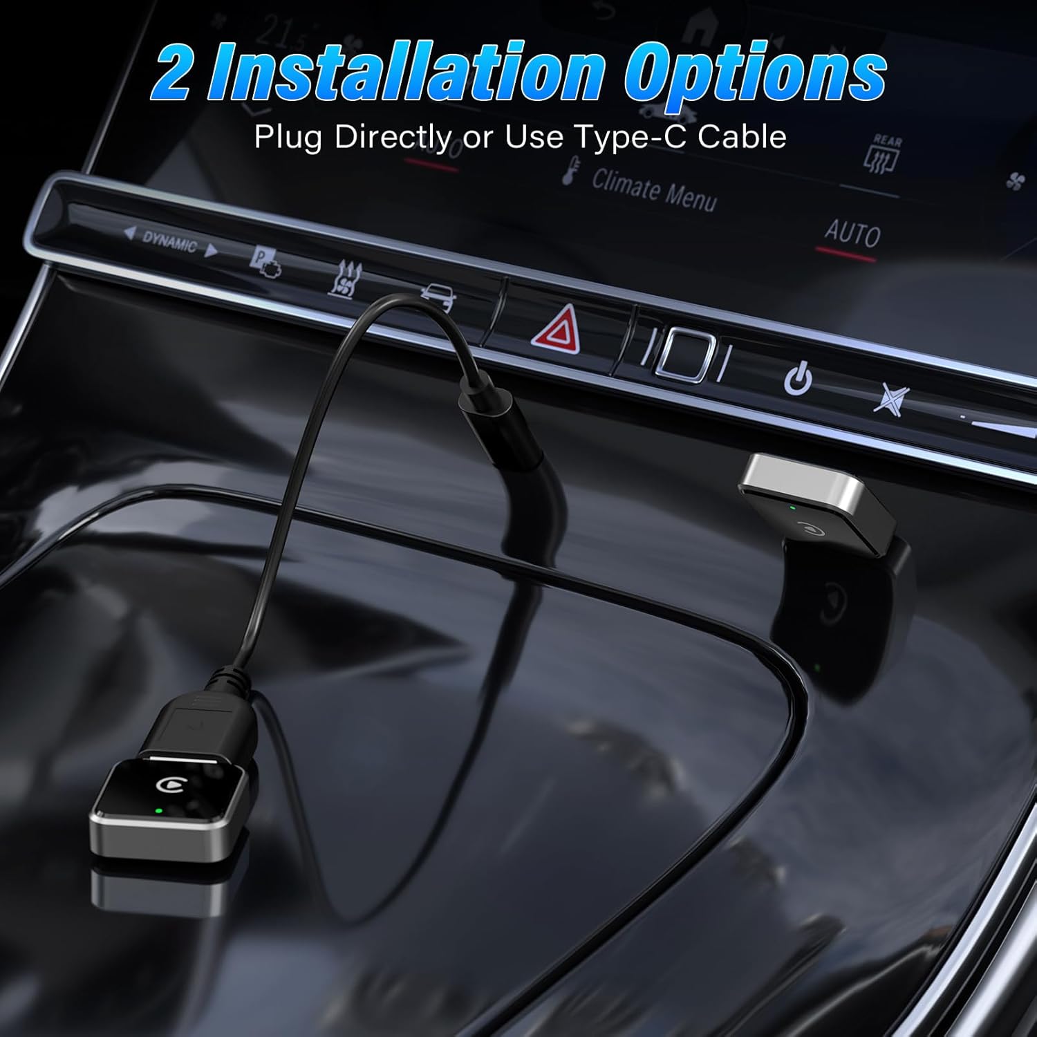 - Only suitable for original wired CarPlay vehicles: Our wireless CarPlay adapter is only suitable for vehicles with original wired CarPlay function, and does not support vehicles without CarPlay system or CarPlay implemented through after-installation/third-party systems. Compatible with iPhone iOS 10 and above. Includes USB-A and USB-C adapters to ensure compatibility with most car USB ports