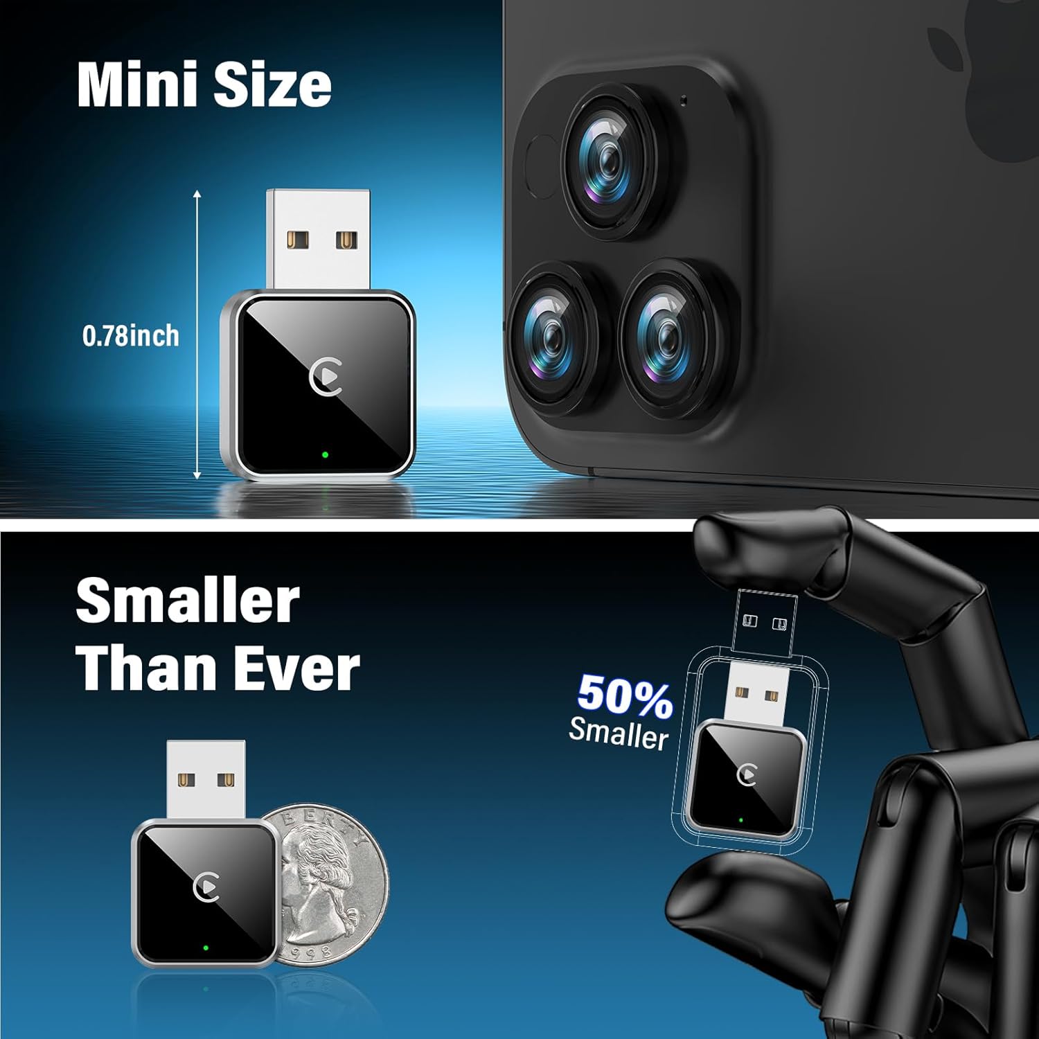 - Fast and Stable Connection: Our wireless CarPlay adapter for Apple is equipped with a high-speed 5GHz WiFi module, which provides faster data transmission rates and stronger anti-interference capabilities than traditional 2.4GHz. Supports HD video and real-time voice navigation, and can maintain a stable connection even in complex urban road conditions. You no longer have to worry about disconnection, delays or freezes