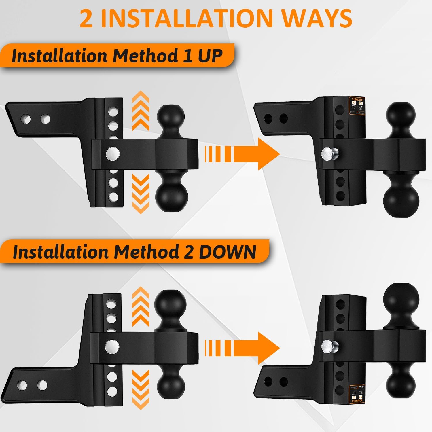- 【FLEXIBLE ADJUSTABILITY 】--The 6” adjustable ball mount is a standout feature of this hitch. Its ability to drop or rise in 1” increments provides the perfect fit for trailers of different heights. No more hassle of swapping hitches for different vehicles or trailers. you can easily adjust the height to achieve a level towing setup, ensuring a smooth and stable ride every time.