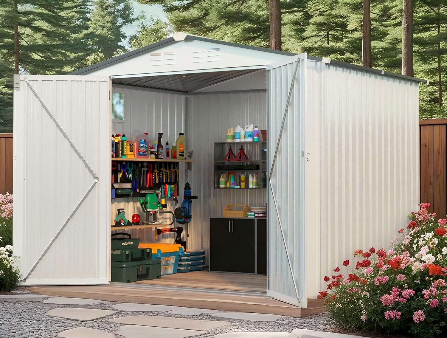 - Efficient Storage - 8X6FT (approximately 92.91×68.9×72.83 inch), suitable for balcony and courtyard corners. It can easily accommodate garden tools, sports equipment and daily miscellaneous items. The internal space can be equipped with shelves and hooks to achieve orderly and categorized storage.