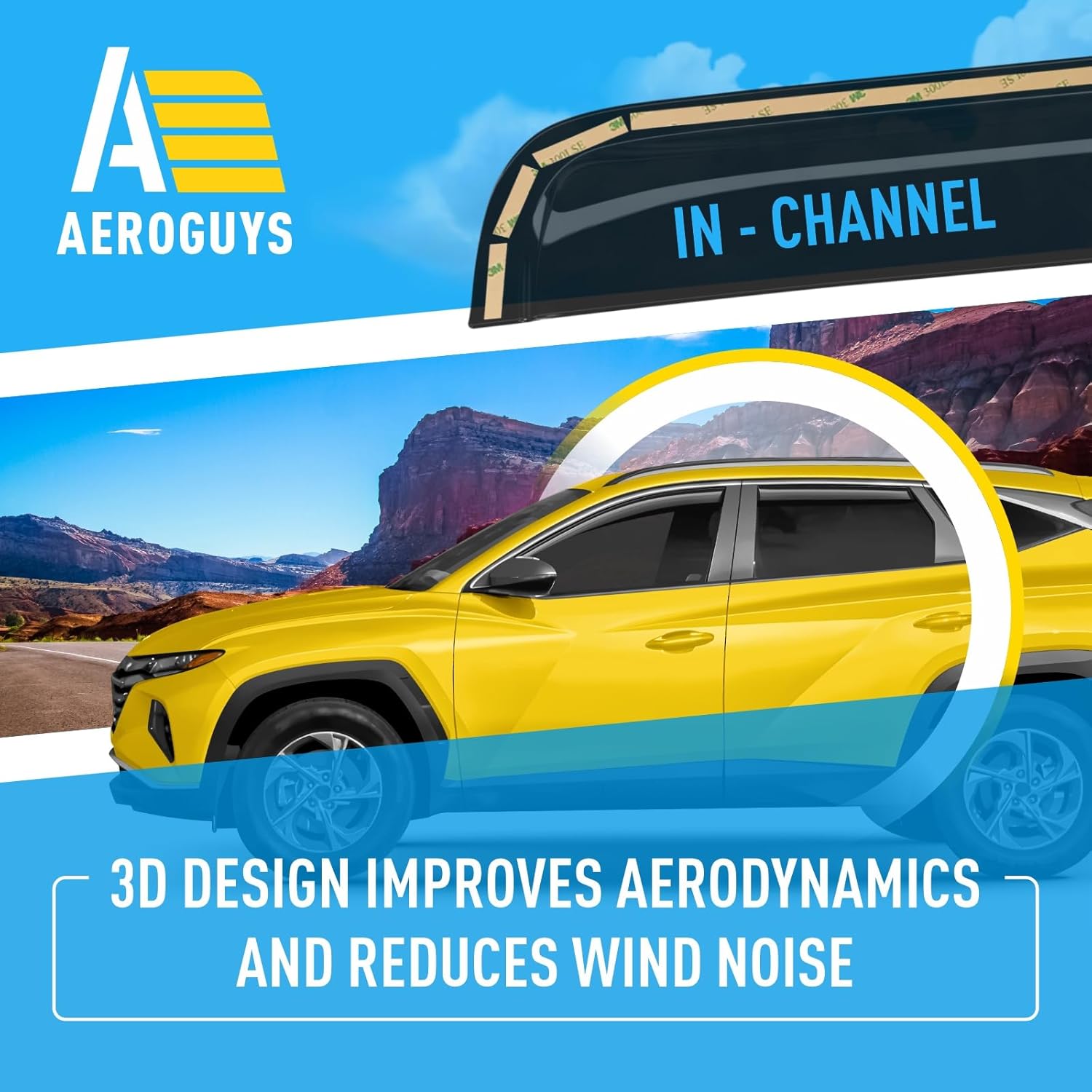 - No Tools Needed, Quick and Easy Assembly β These rain guards are very easy to fit. IN-CHANNEL INSTALLATION provides perfect fit for your car. Just slip it onto your carβs window and your job is done within minutes. There is no drilling or no tools required. Be sure that AEROGUYS window deflectors are water resistant, sun protective and will not bend, break or crack regardless of the weather conditions.