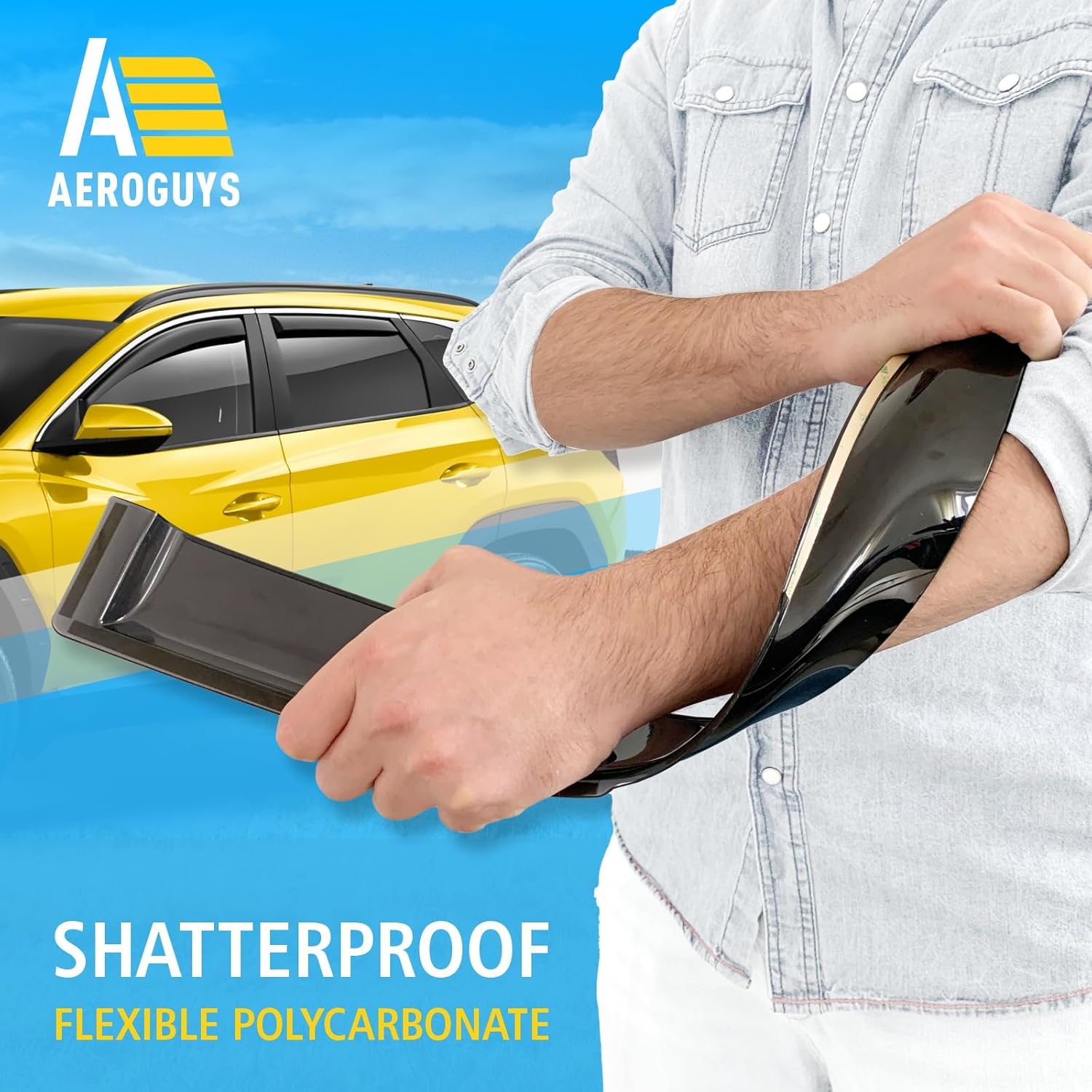 - Incredibly Durable AEROGUYS Auto Window Deflectors β They are made with strong and tough polycarbonate which is clear and scratch-resistant. They also provide UV protection making your ride more comfortable under all weather conditions.