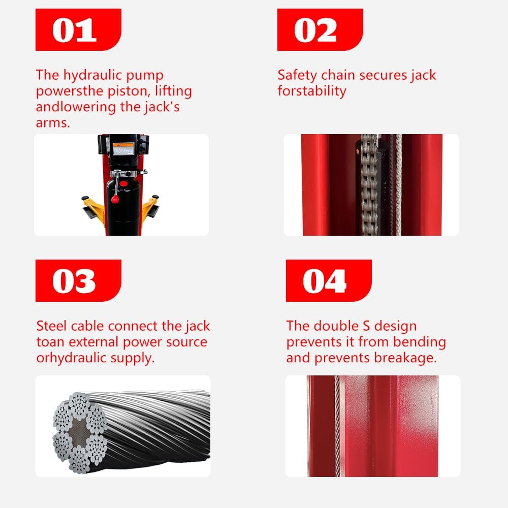 - Symmetric arm, Dual Hydraulic Chain-Drive Cylinders, Robber pad door opening protection, Screw-on pad and extension support adaptor sets +100mm. High-quality materials ensure safety at the same time, extend the lifespan of the machine