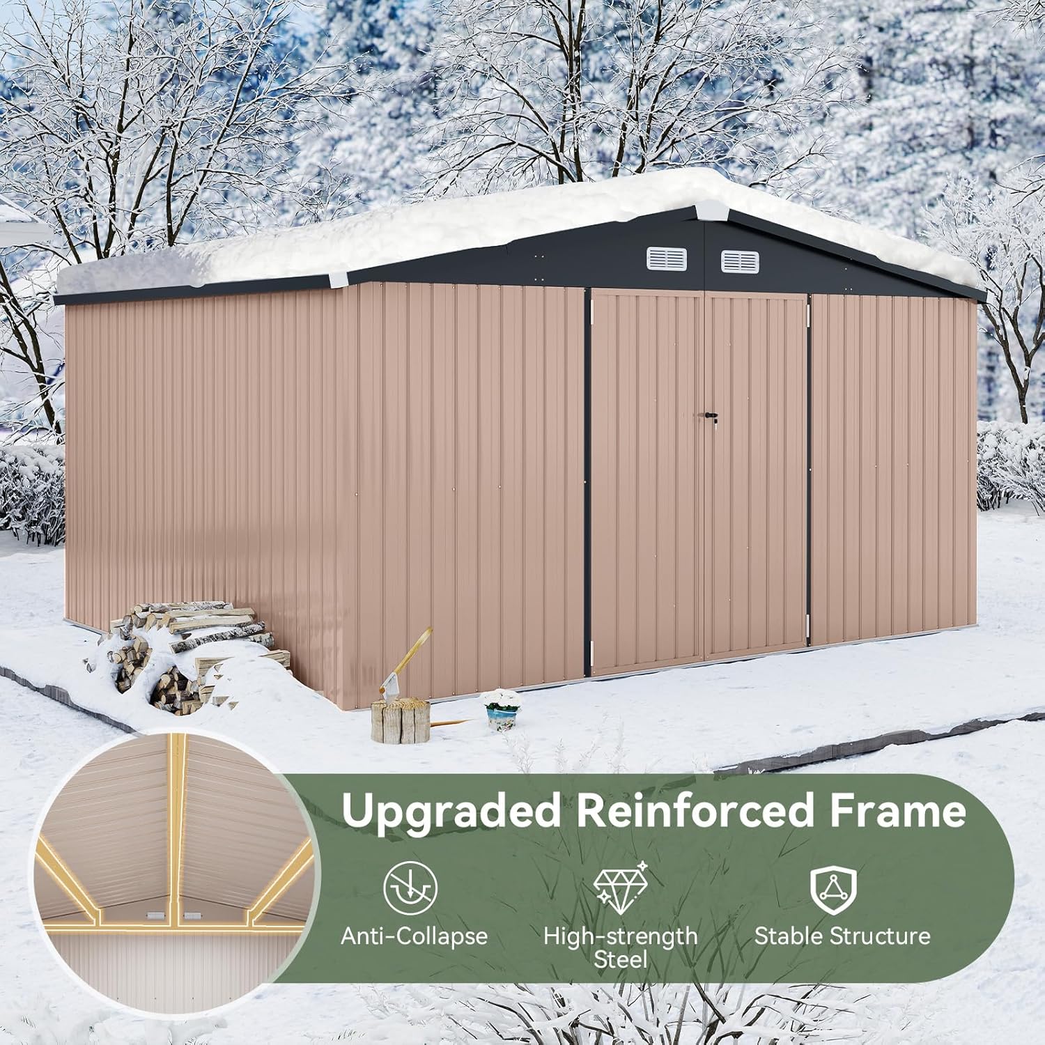 Aoxun 12x10 FT Shed Outdoor Storage Shed with Spacious Doors, Large Shed Steel Utility Tool Shed Storage House with Door & Lock, Metal Sheds with Sloped Roof for Garden Patio Lawn Poolside, Brown