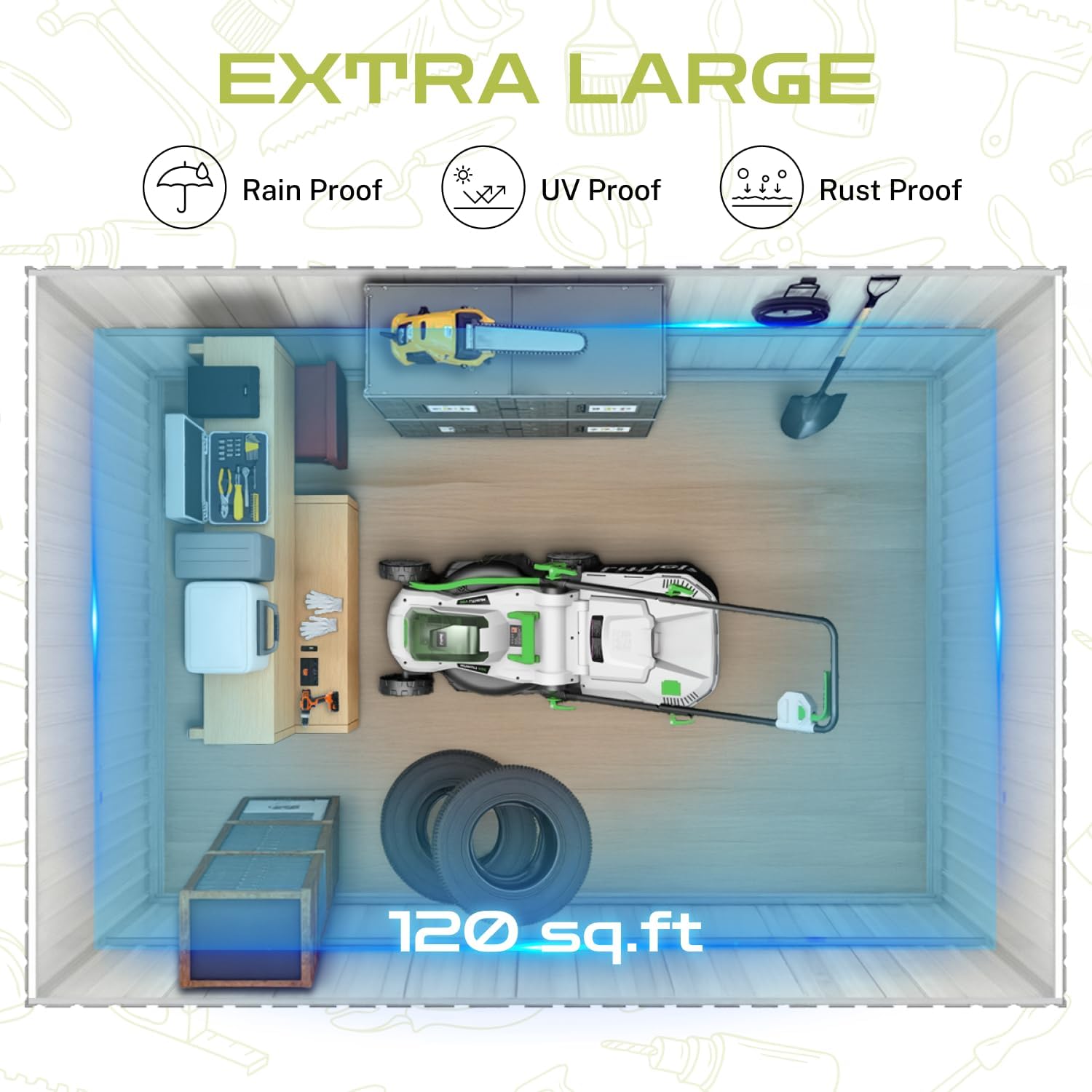 - 【Spacious & Multi-Functional】This 120 sq.ft outdoor storage shed offers versatile space for gardening tools, seasonal gear, or as a compact workshop, featuring 4 vents and a translucent window to prevent humidity damage