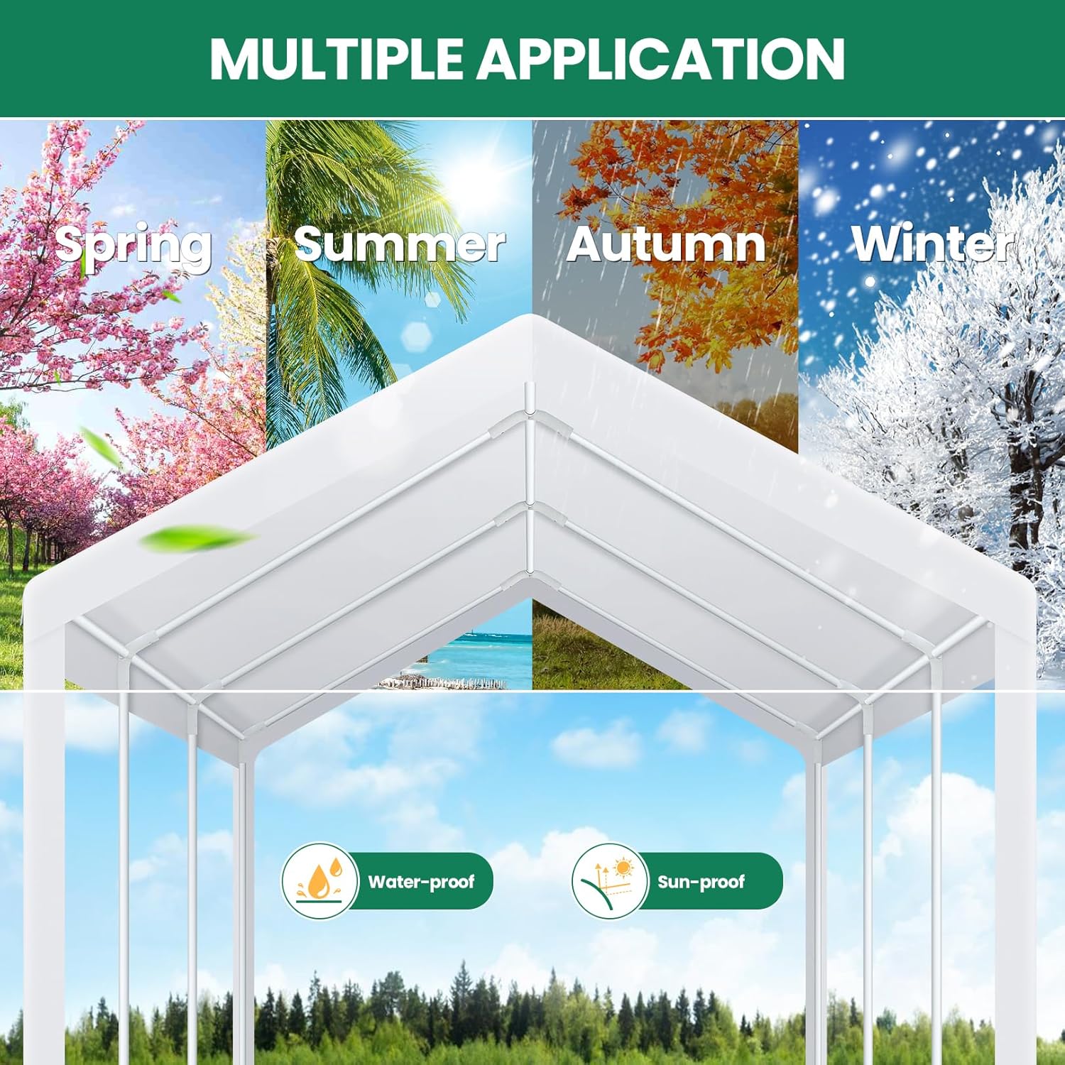 - 【Heavy Duty Structure】 Carport shelter is crafted from a rust-resistant powder-coated steel frame, effectively preventing chipping, peeling, rust, and corrosion. With 8 solid legs made of 1.5-inch galvanized steel pipes, it ensures enhanced safety and stability.
