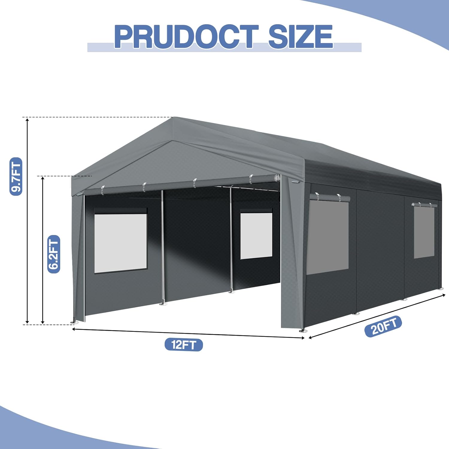 - Spacious Heavy-Duty Carport: The 12x20 car port provides ample space for your vehicles, boats, cargo, etc. Removable sidewalls and doors can meet your various needs. The carport canopy shelter is perfect for parties, commercial exhibitions, outdoor events, weddings, storage shelters, and so on