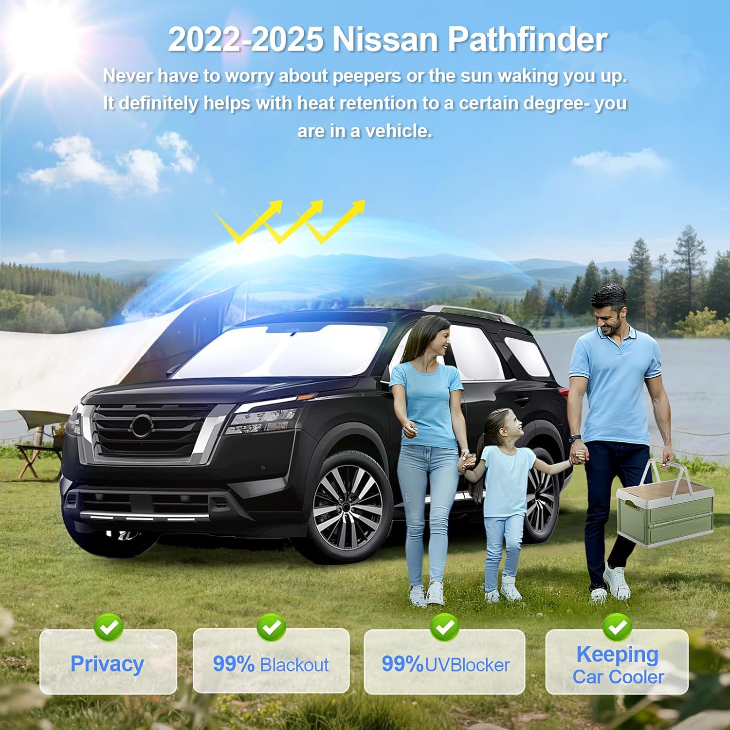 - Designed specifically:SHINELINERS full window sunshade is specially designed for Pathfinder 2022 2023 2024 2025.Provide your car with comprehensive UV and infrared protection, not only keeping the interior cool in hot weather but also extending the lifespan of the car's interior
