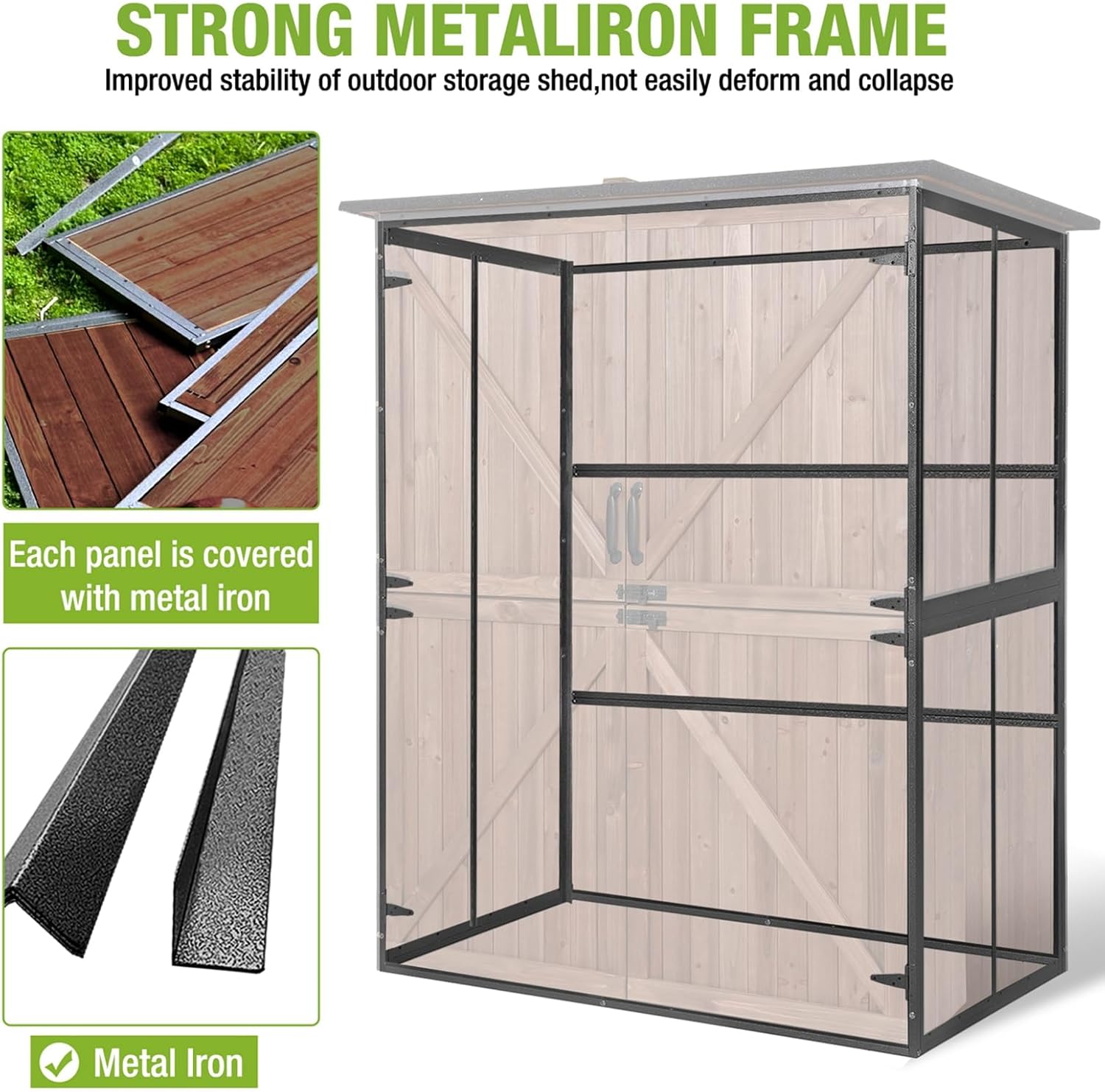 Outdoor Storage Shed Large Cabinet with Strong Metal Frame,Wooden Tool House with Adjustable Shelfs, House Garden Shed for Backyard Garden Patio Lawn
