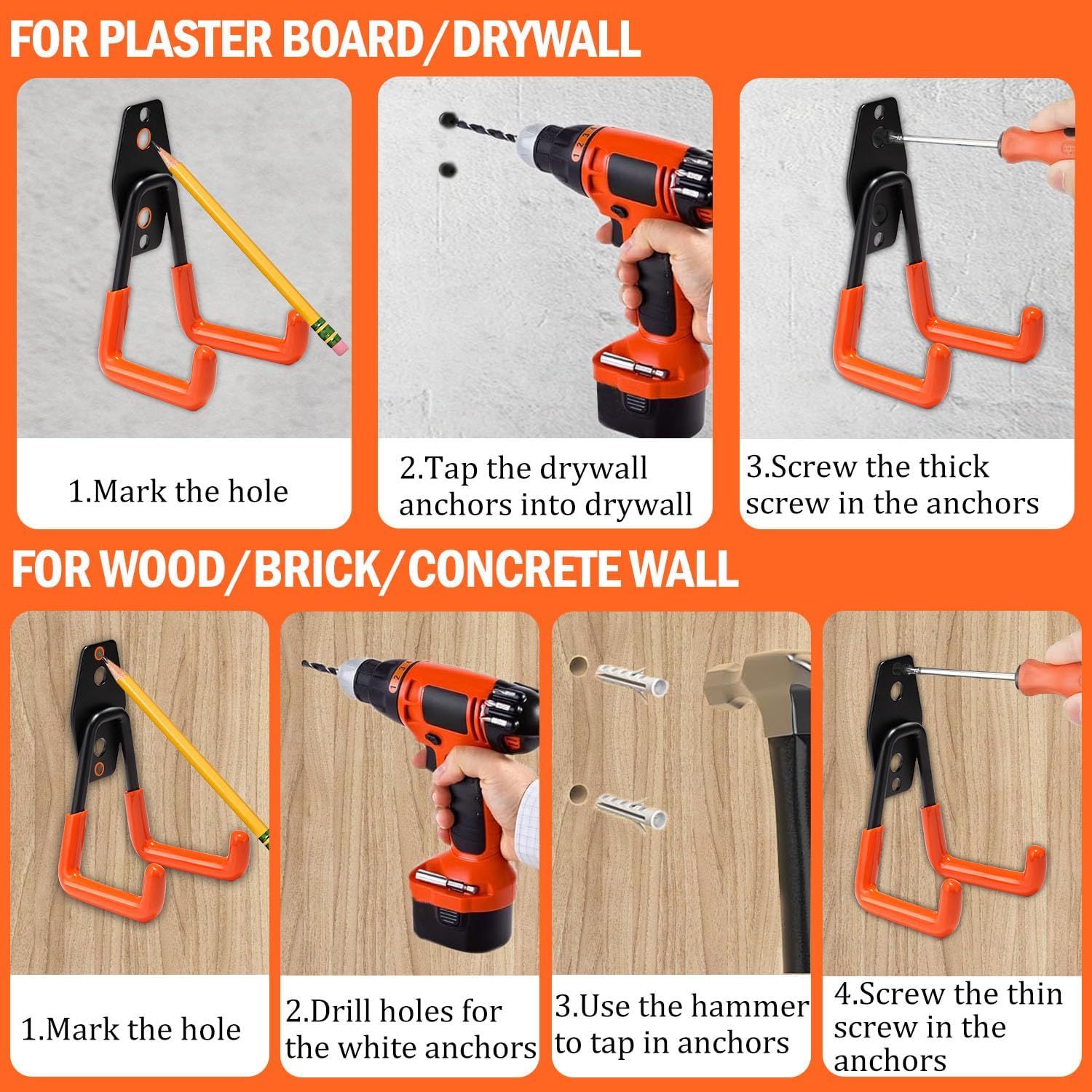 vivicreate 10 Pack Heavy Duty Garage Hooks Wall Mounted Steel Utility Storage Hooks for Tools Ladders Bikes Cables Equipment Organizer for Garage Taller Sótano Ganchos de Almacenamiento