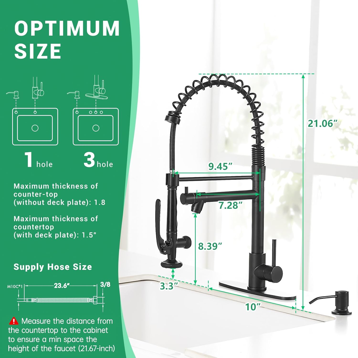 - ENJOY GREAT FUNCTIONALITY: With a one-function kitchen faucet sprayer and a separate pot filler spout, this pull out faucet allows you to handle all types of tasks. The spray head and stream spout can swivel around 360 degrees for full sink access, and the pre-rinse faucet ensures high pressure while still saving on water.