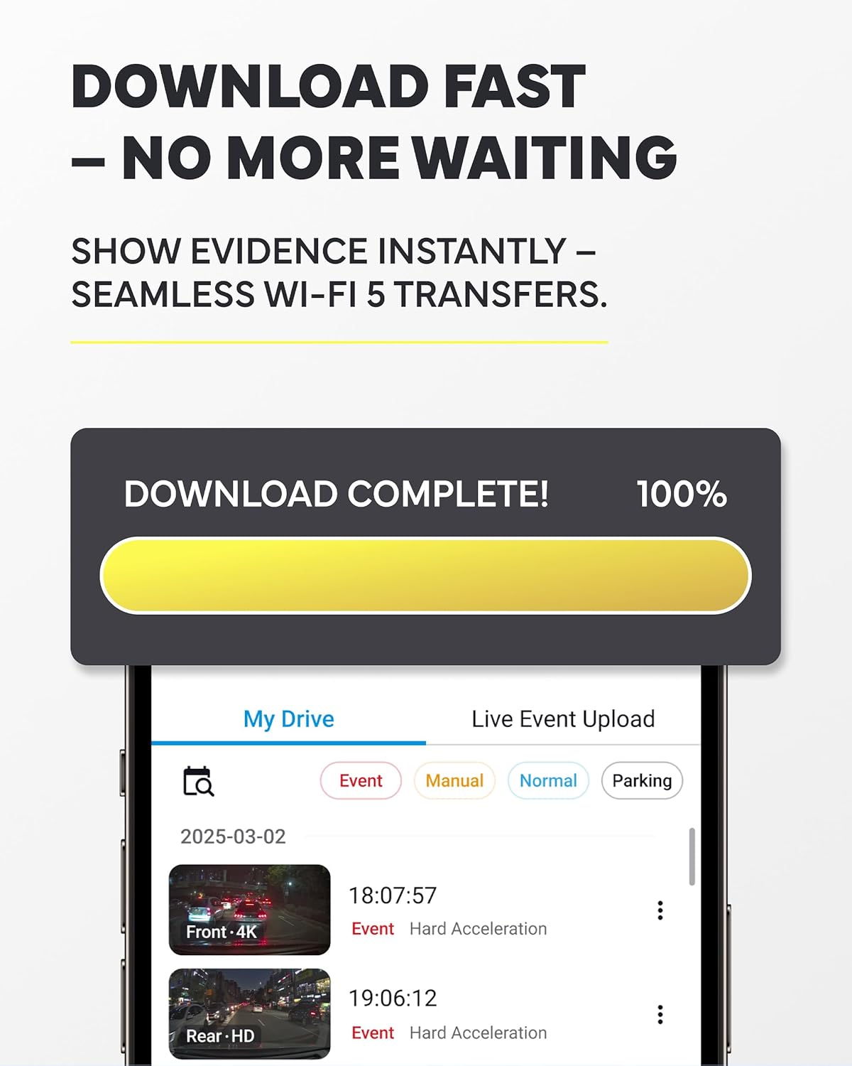 - Wi-Fi Playback and Cloud Connectivity - Access, download, and manage footage directly from your smartphone. Supports Live View, event backup, and remote alerts via the Cloud