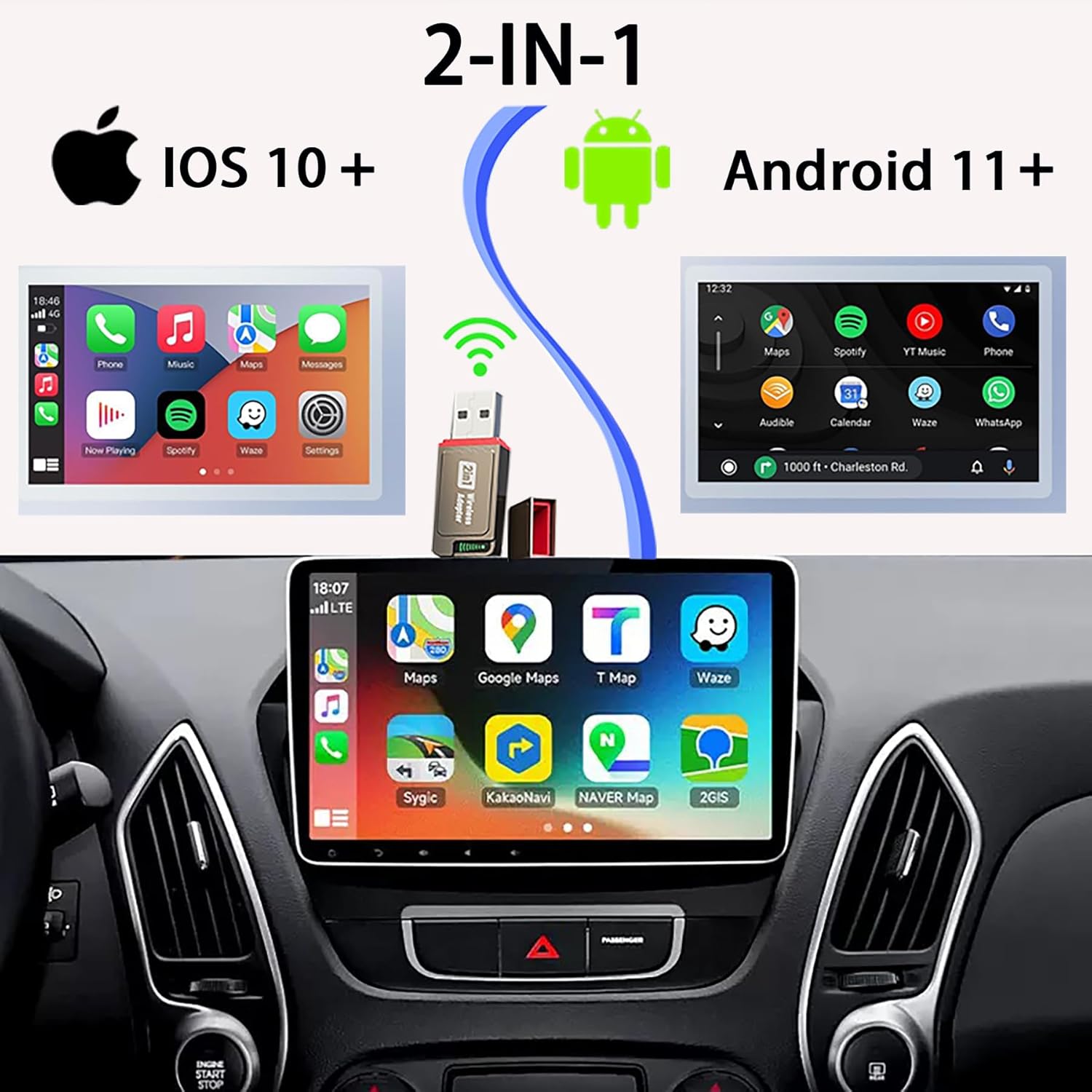 - 🚜【Fast & Stable Connection】 The CarPlay wireless adapter Equipped with dual-band WiFi(2.4GHz & 5GHz)and Bluetooth 4.2 for high-speed data transmission and low latency. Ensures smooth navigation updates and uninterrupted music streaming even on the go.