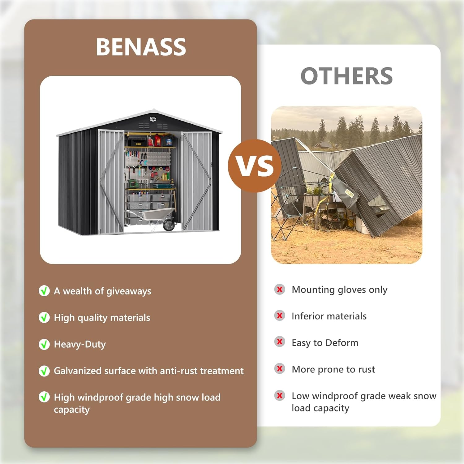 - 【Easy Assembly & Customer Support】:The tool shed includes clearly labeled components, detailed assembly instructions, and protective gloves to ensure an efficient setup. Assembly by 2-4 adults is recommended. For any questions or assistance during assembly or usage, please reach out directly to our friendly customer support team.