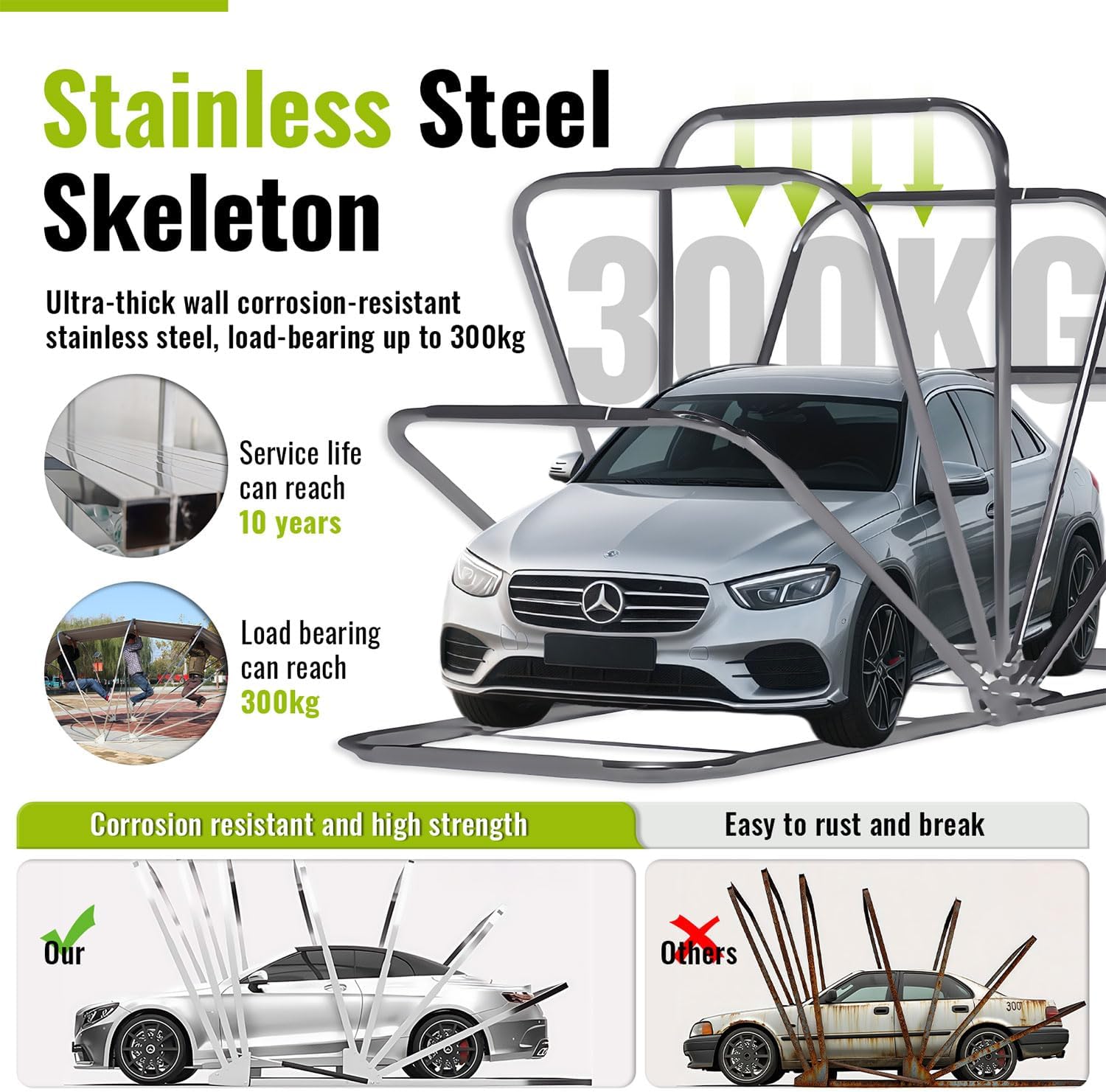 - Multi-Functionality Car Awning: Car Port Thickened, coated, waterproof fabric, anti-exposure, anti-storm, anti-tear, fireproof. Robust structure, strong load and tensile strength, ultra-thick-walled stainless steel, high strength, not easy to deform, stable and durable.