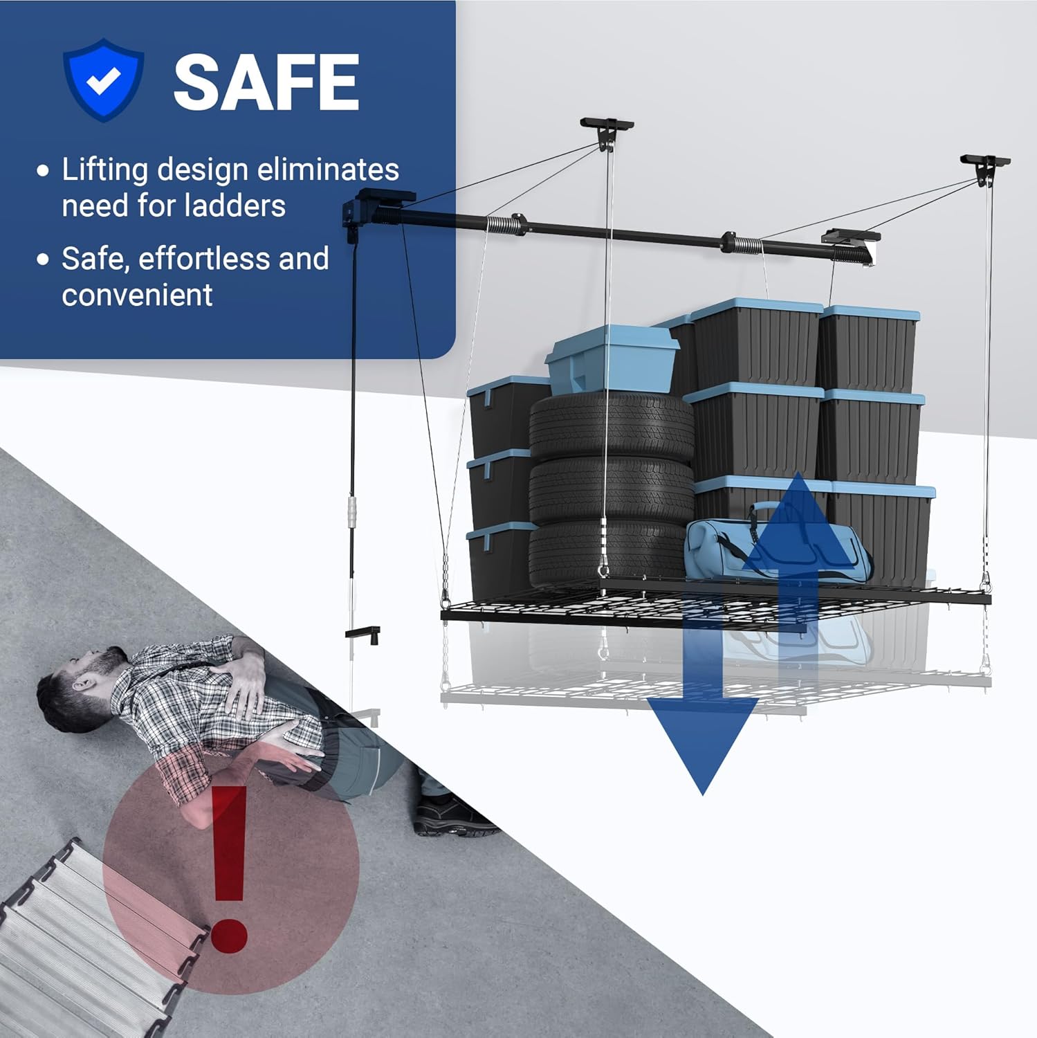 - Maximize Garage Space: The 4x4 feet platform provides the perfect garage storage solution, protecting your belongings while utilizing ceiling space to store seasonal items and unused belongings.