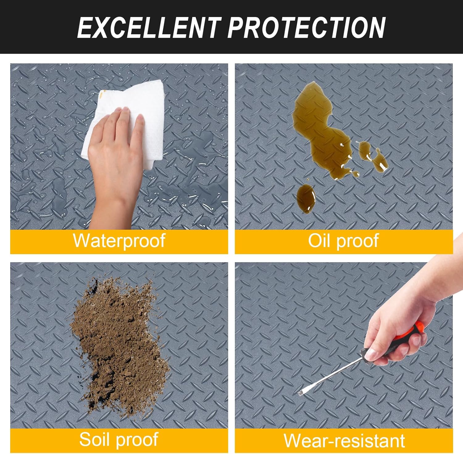- Premium PVC Rubber Material: Our Garage Floor Mat crafted from high-quality PVC rubber, ensuring durability and resistance to wear. The material is not only non-slip but also provides excellent protection against daily wear and tear.Low temperature will affect the paving of the floor mat, recommended for indoor use.Tips:If there is a slight bulge, it is recommended to place at room temperature for a few days.