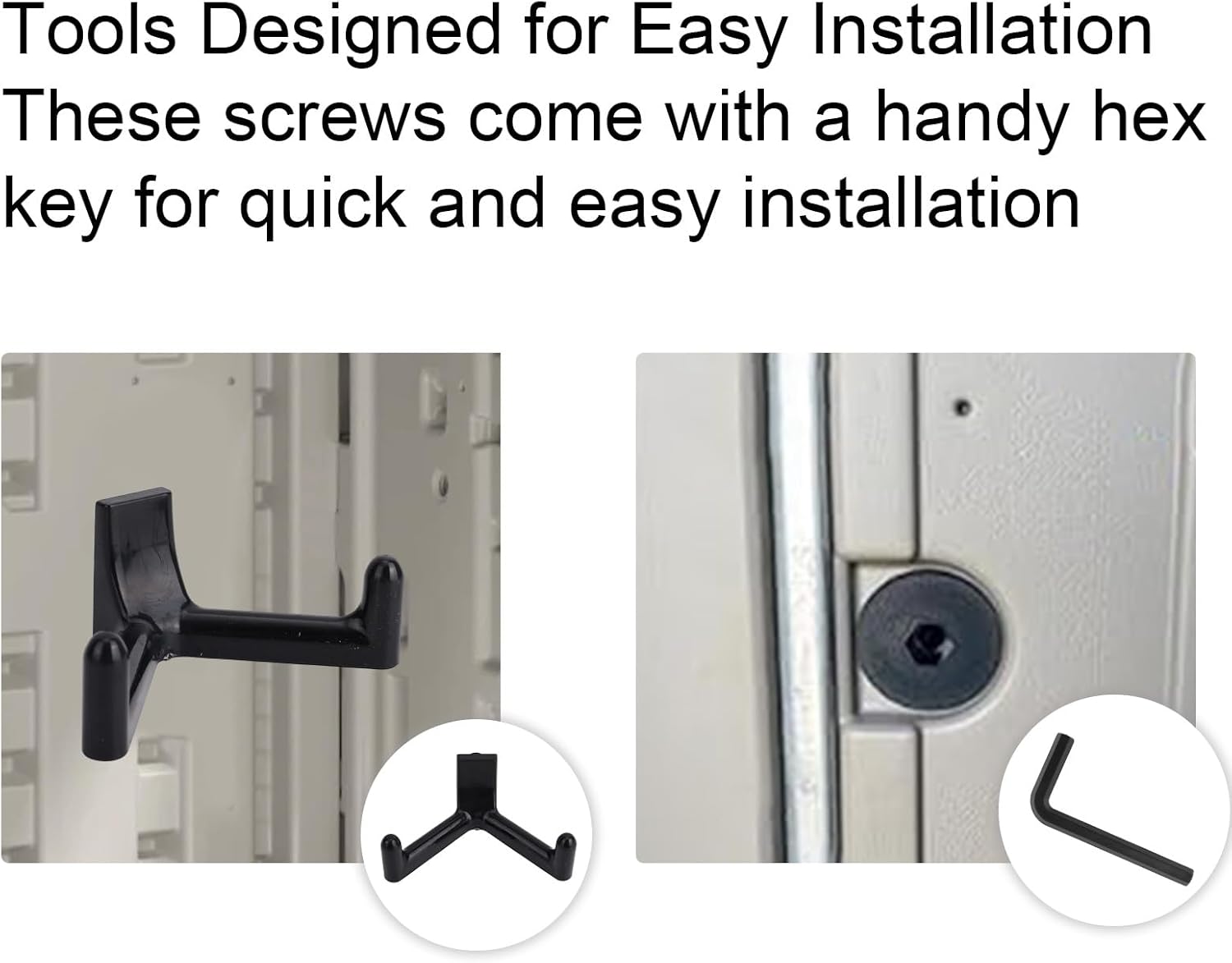 16 Pcs Storage Shed Hooks Set for Suncast, 5 Black V Shaped Tool Hooks Organizer with Long Screw Wrench Short Screw Compatible with Suncast/Craftsman Storage Shed Accessories