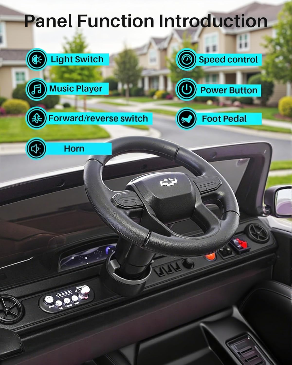 Joywhale 24V Ride on Truck 4WD Kids Electric Vehicle Licensed Chevorlet Ride on car with 7AH Big Battery, 320W Powerful Motors, 2 Seats, Music, 4 Wheel Suspension, 2 Speeds, LED Lights,Black