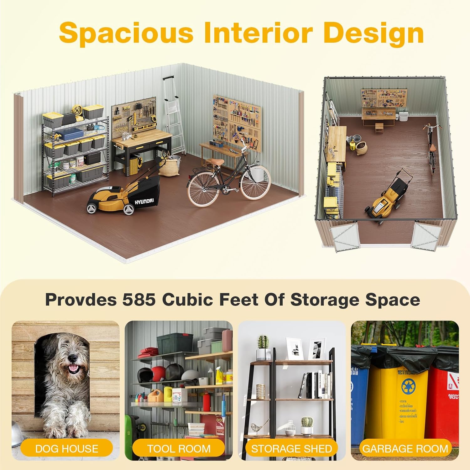 - All-Weather Versatility: Optimize backyard, patio, or driveway storage with this versatile outdoor storage shed. The design accommodates bike storage, tools, generators, and gardening equipment, with vertical space for tall items like shovels or ladders. Ideal as a patio storage solution or garden shed for diverse applications.