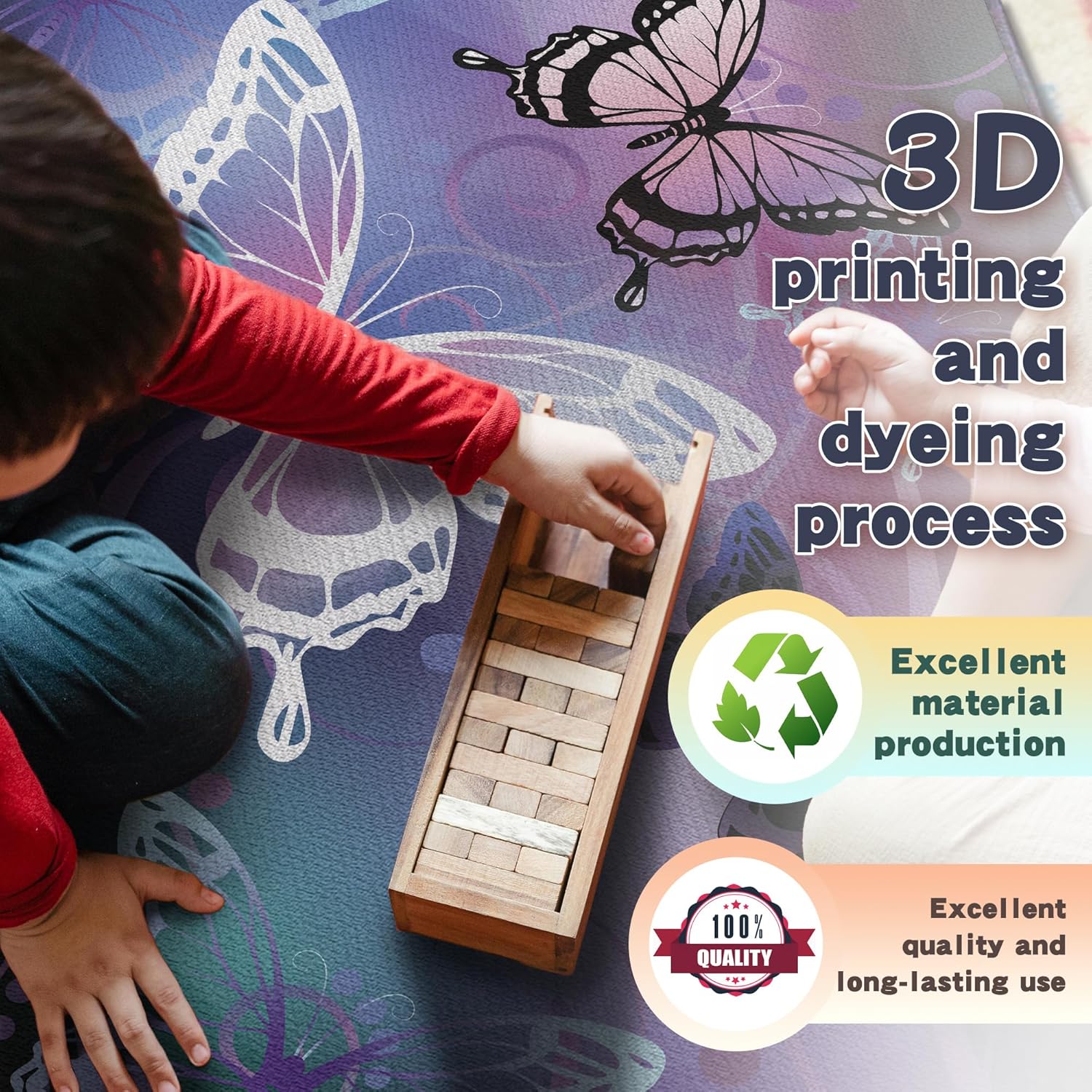 Beautiful Butterfly Fantasy Rug for Playroom Girls Bedroom Colorful Rainbow Butterfly Decor Area Carpet 3x4 Purple Mat 3D Printed Non-Slip Washable