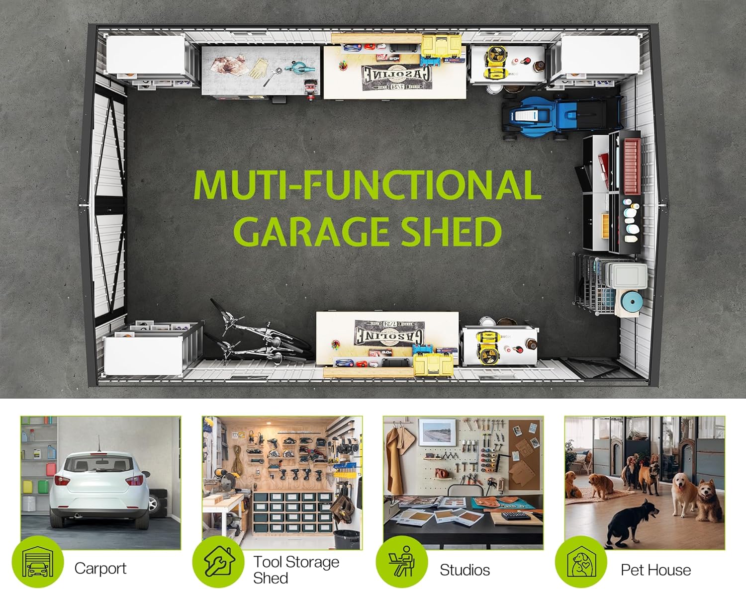 - Spacious Design: Measuring 13.2x20.7x8 FT, this metal garage offers 1682 Cu.ft space to protect your vehicles, RVs, or outdoor equipment from the elements, ensuring they stay safe and dry